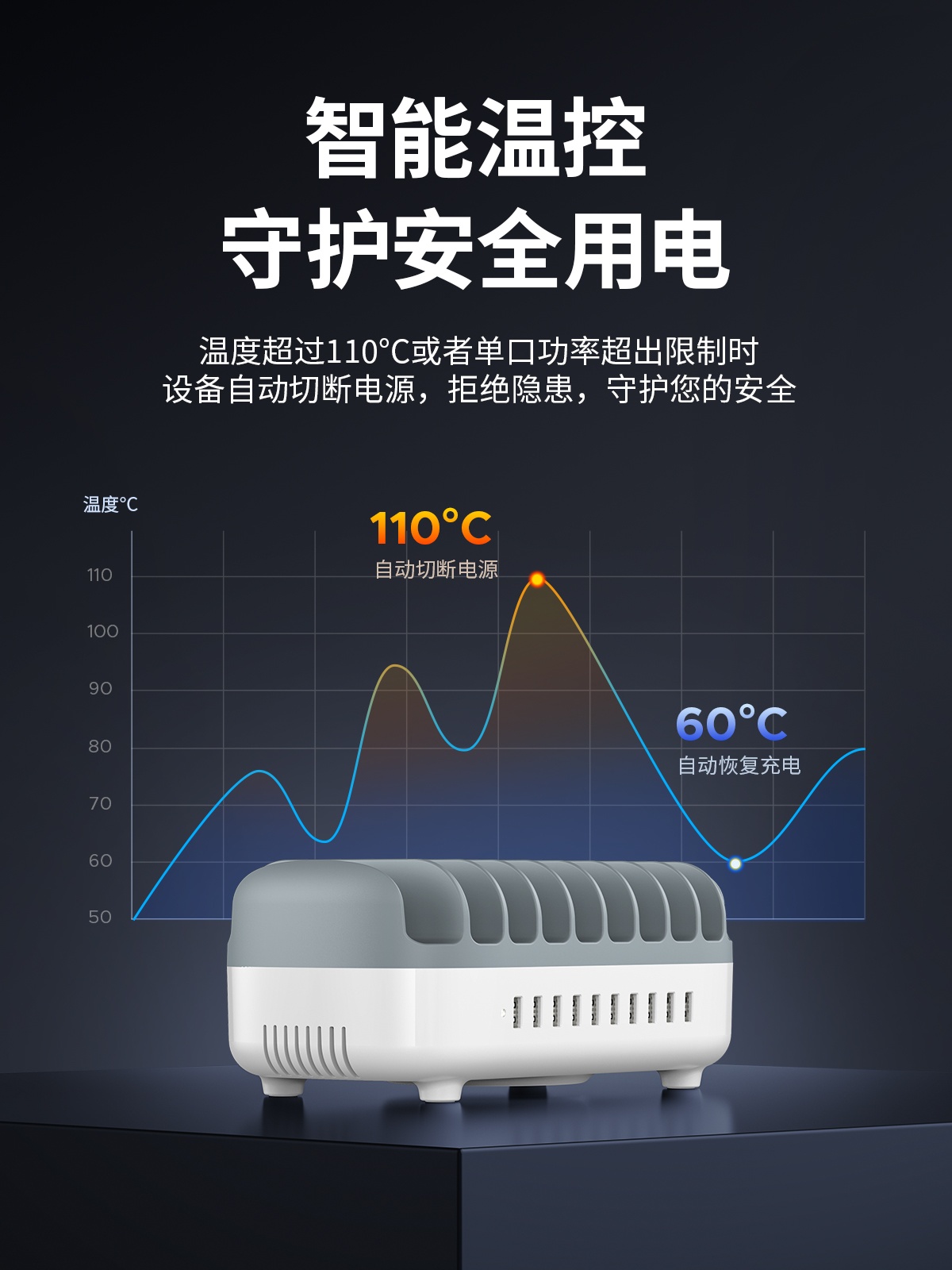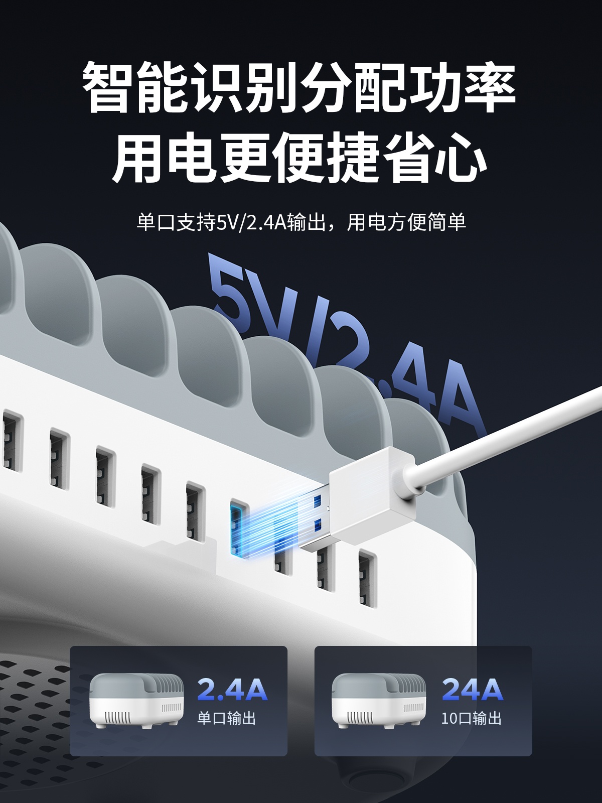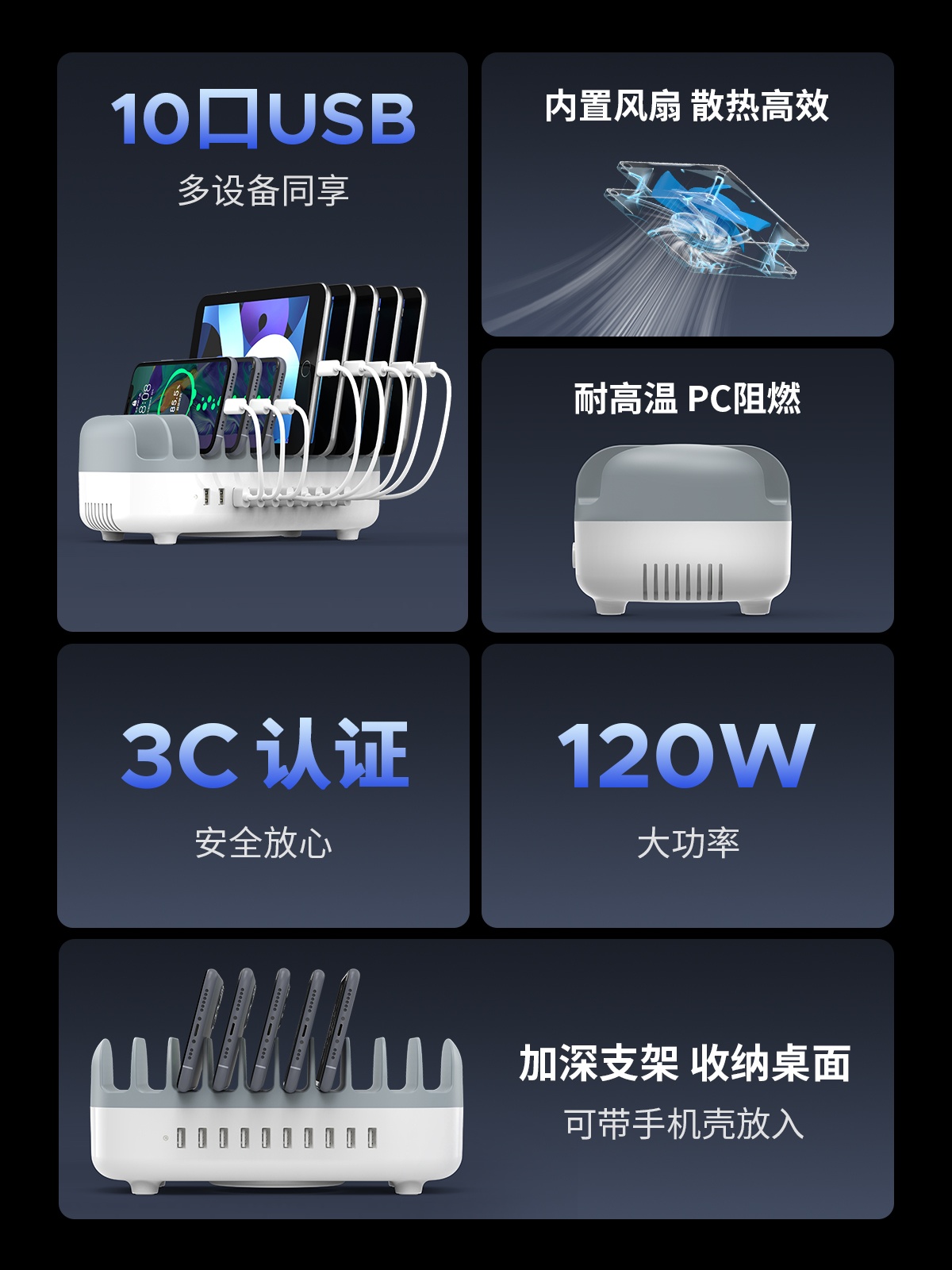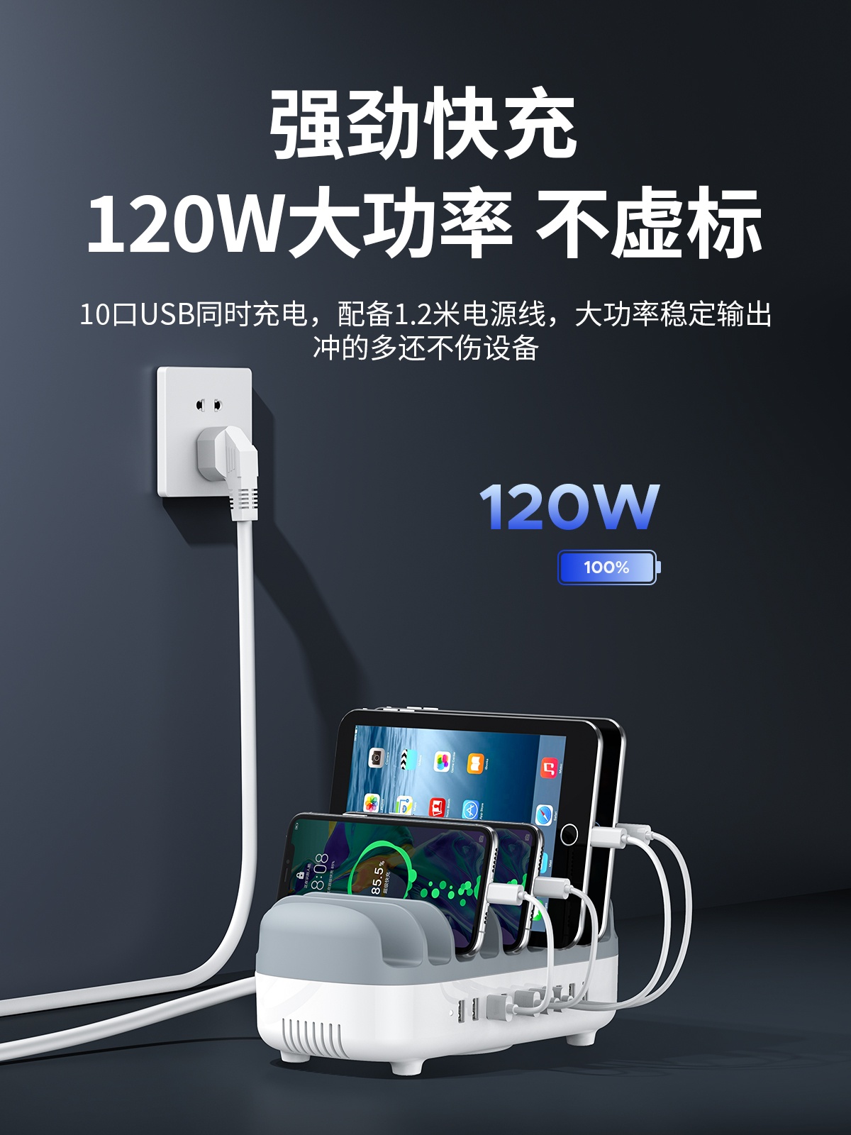 充電巴士支架式10口120W總功率智能充電器