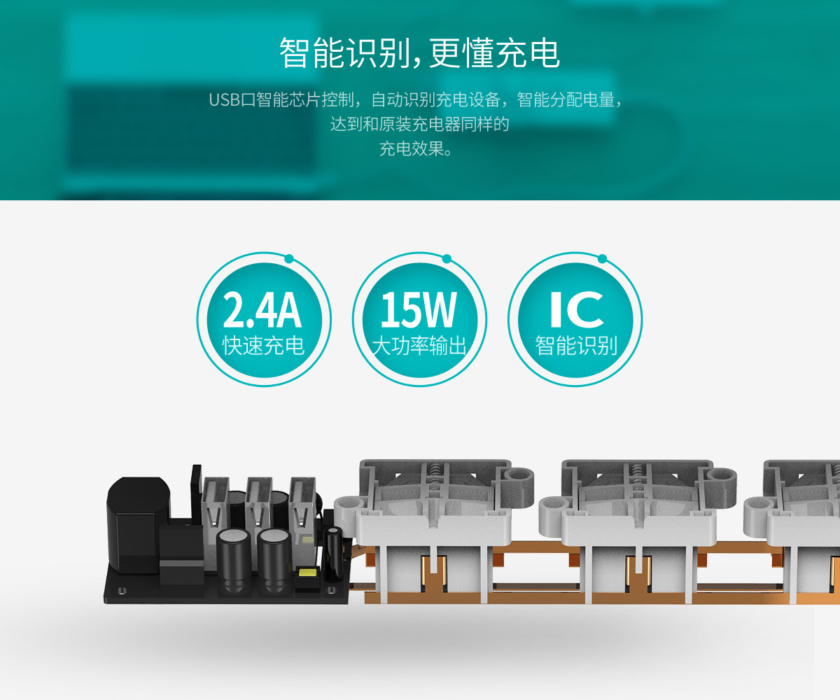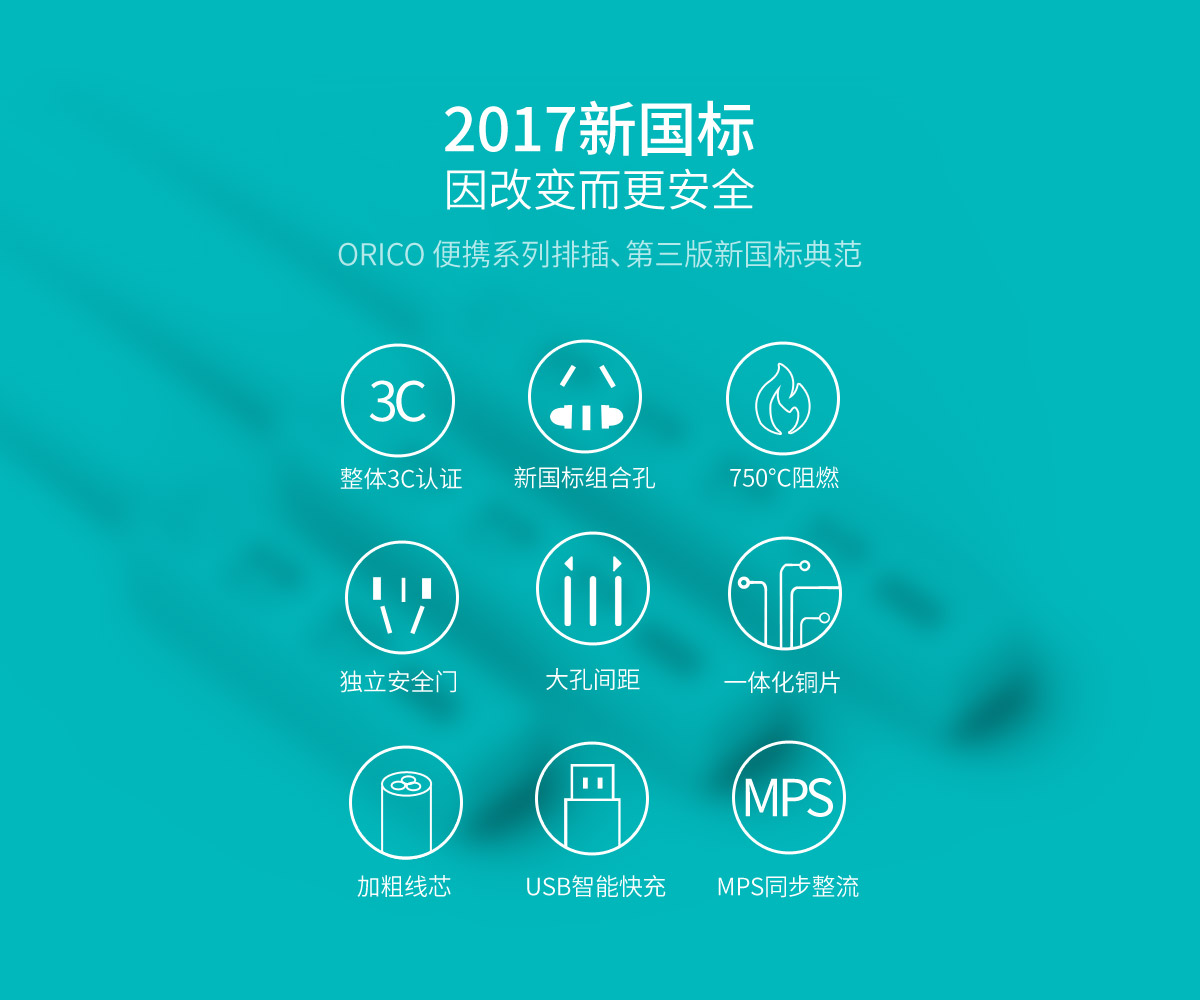 新國標2AC口3usb便攜桌面式排插