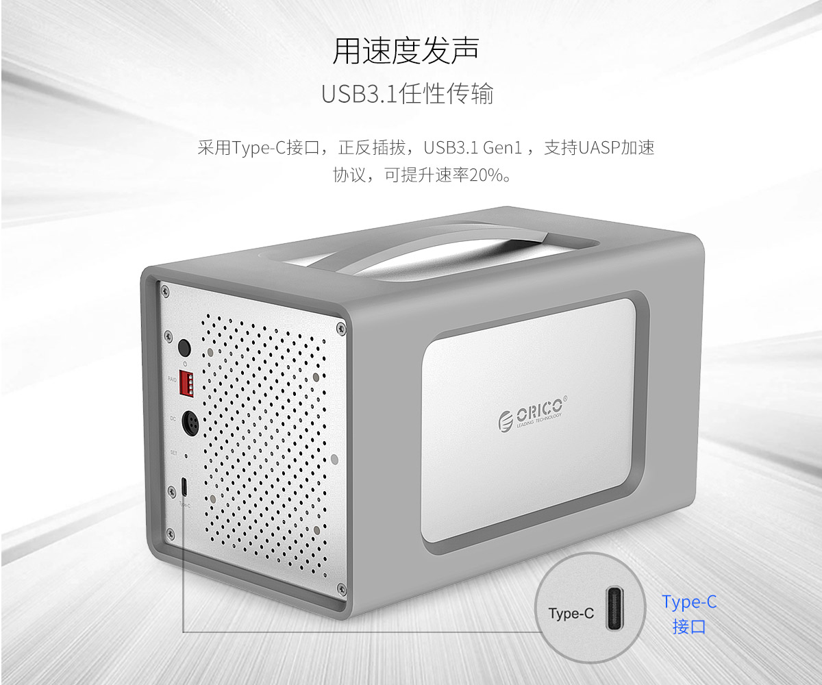 四盤位磁盤陣列,3.5英寸Type-C硬盤,支持多種RAID模式