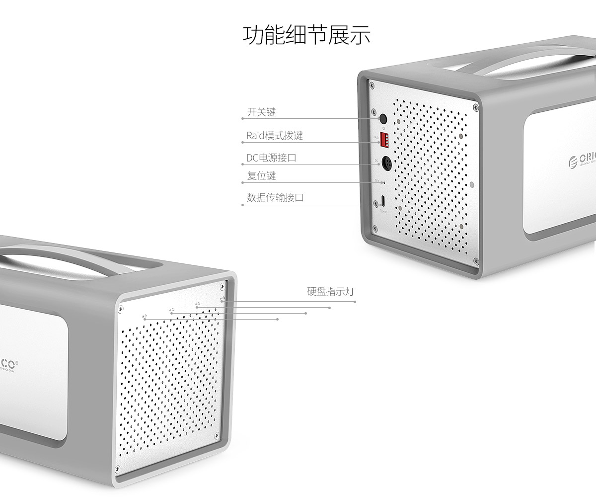 3.5英寸四盤位Type-C帶陣列硬盤柜,豐巢系列帶提手
