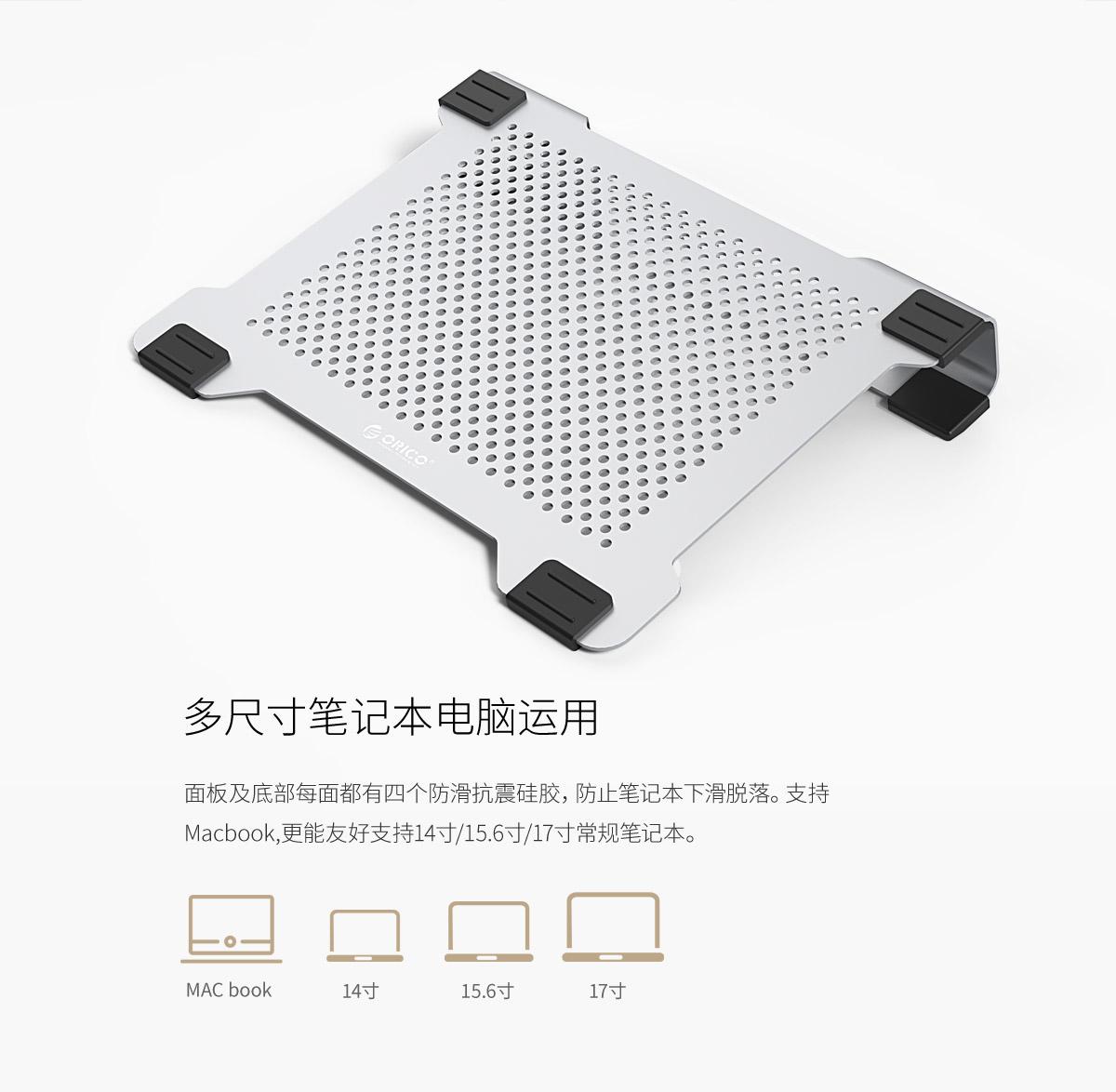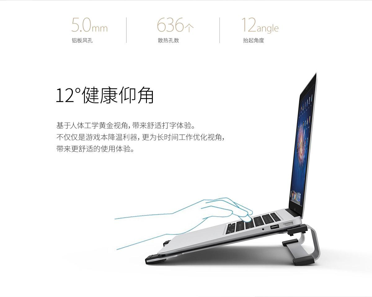 5mm鋁板風孔,12度仰角設計,USB借一還一,防滑硅膠墊,多尺寸適用