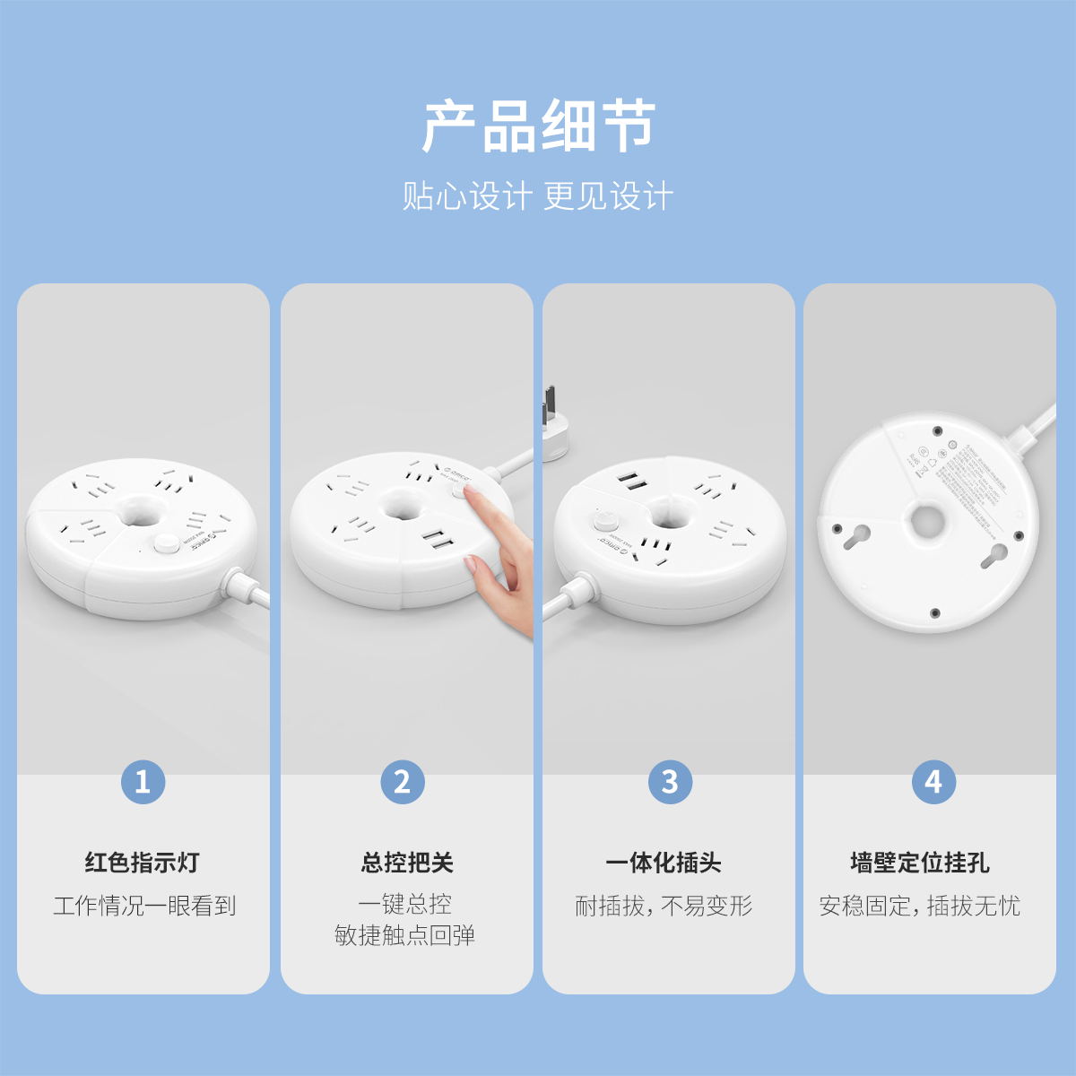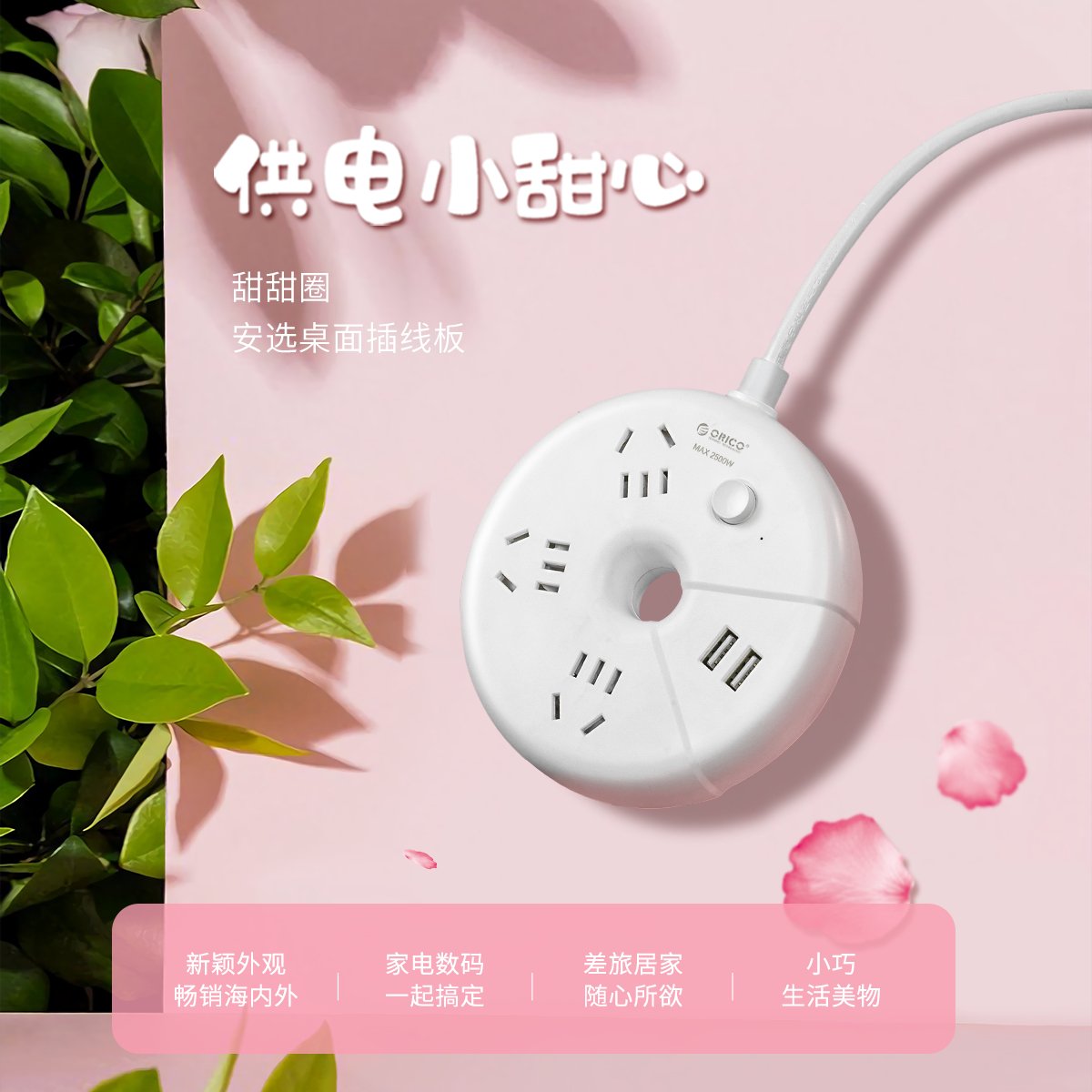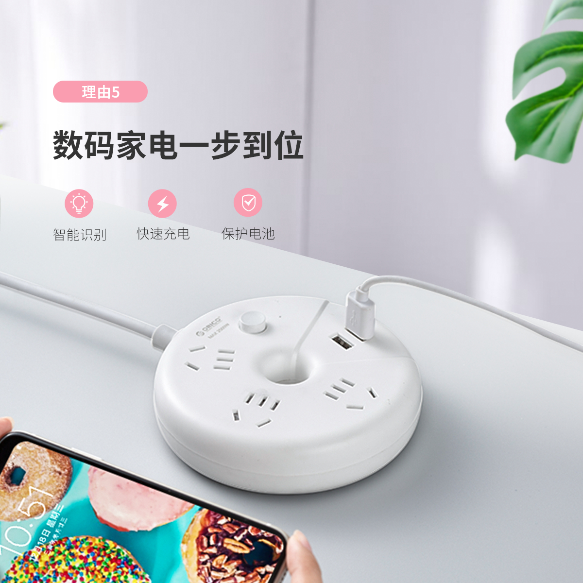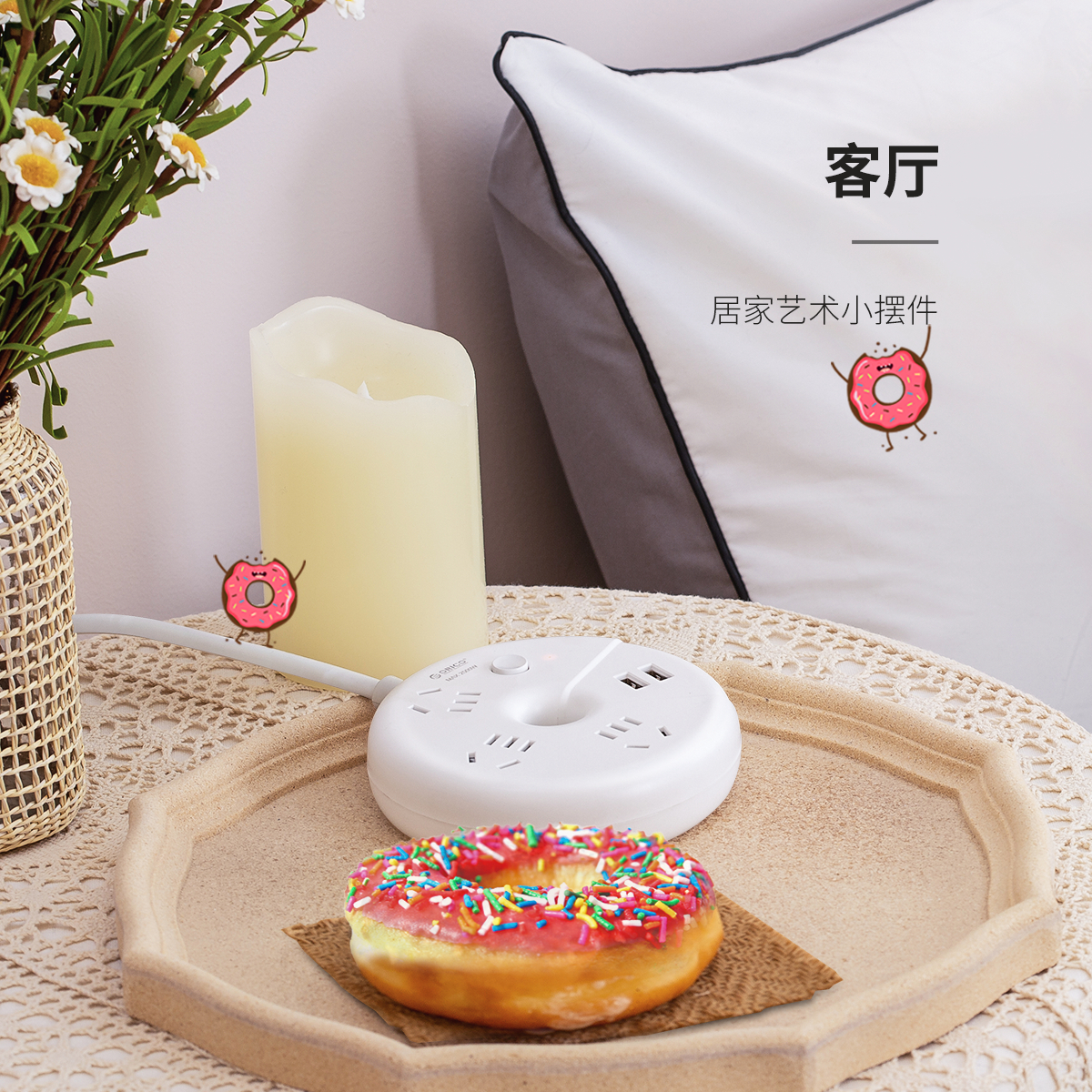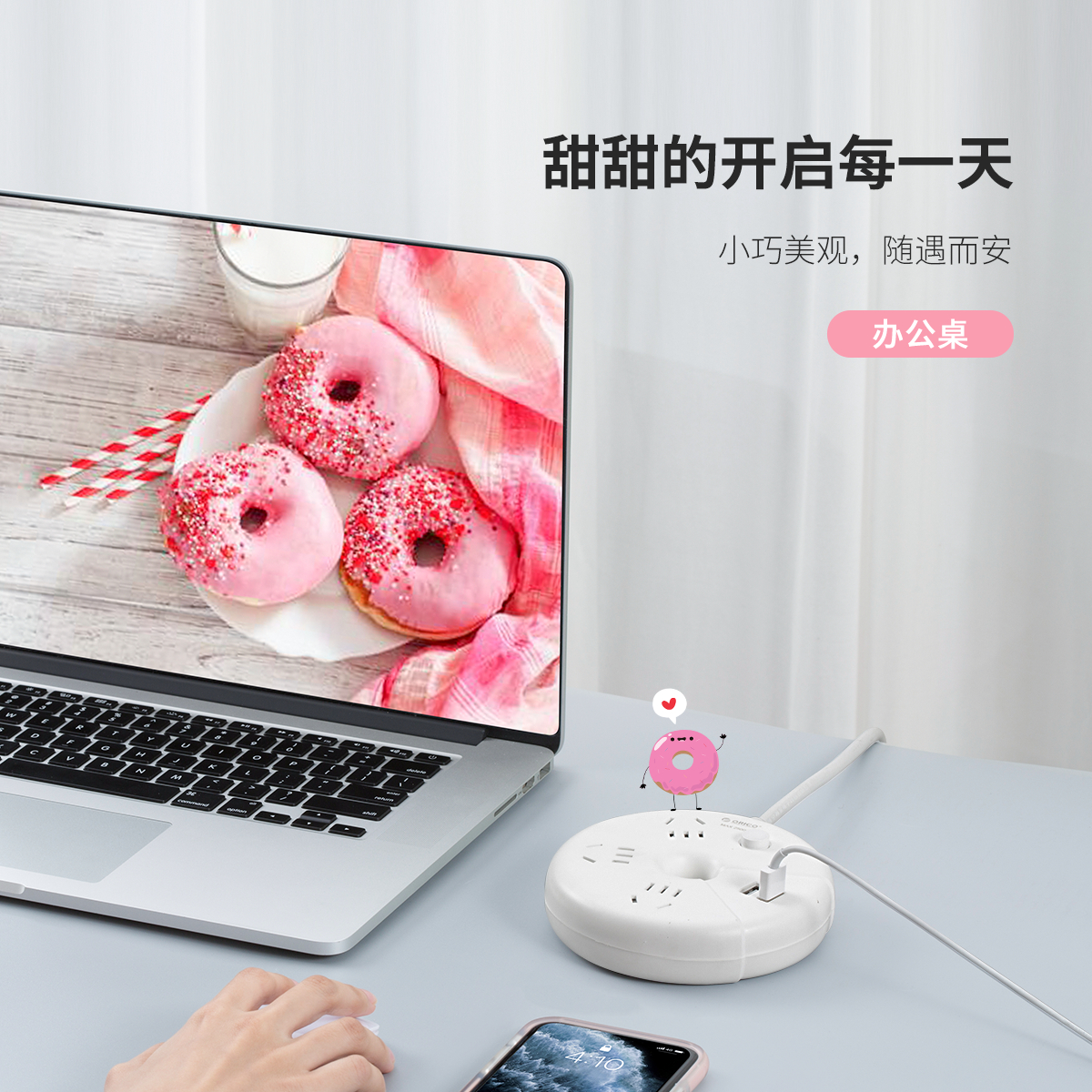 甜甜圈造型桌面插線(xiàn)板,智能USB延長(zhǎng)線(xiàn)插座