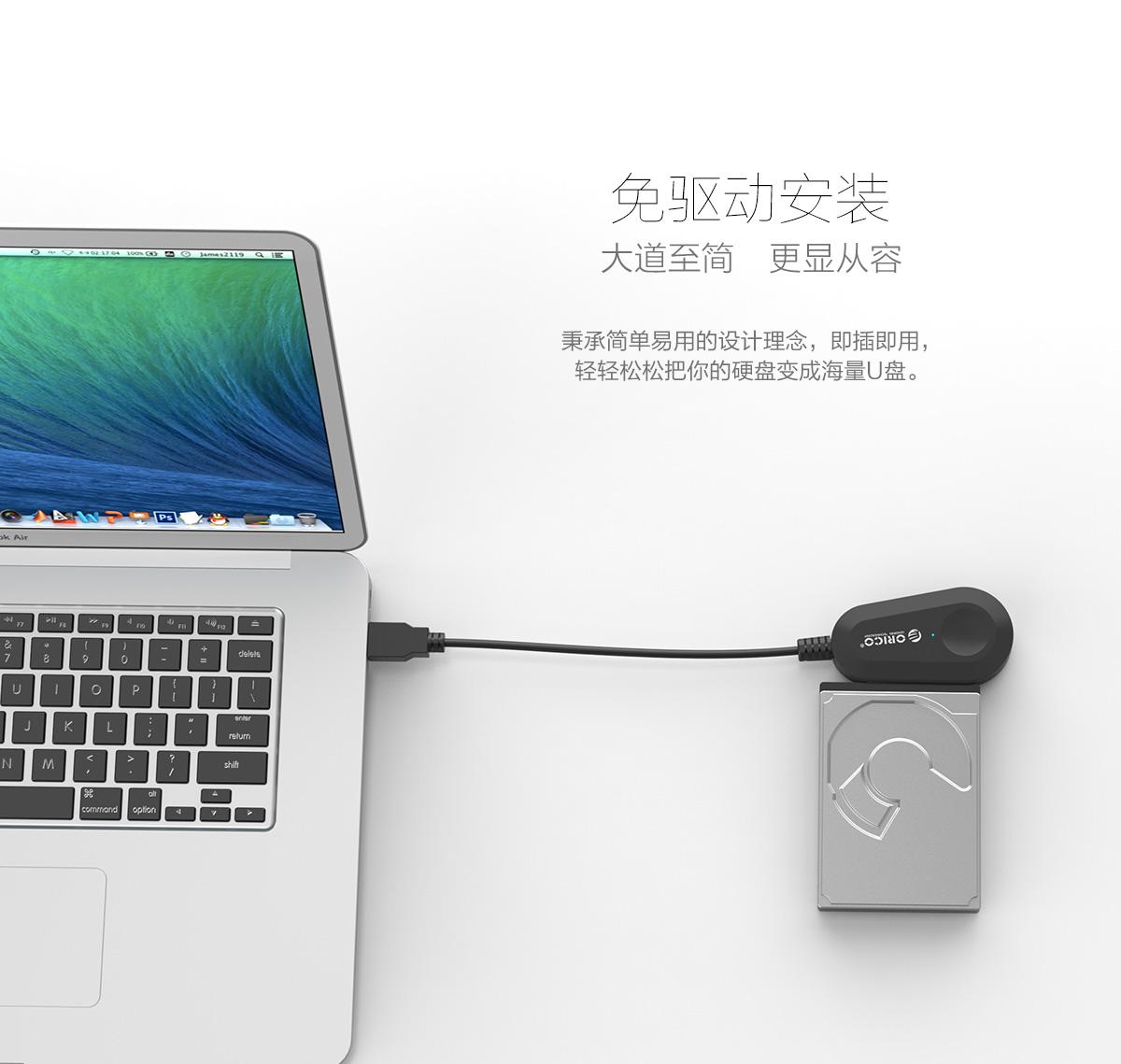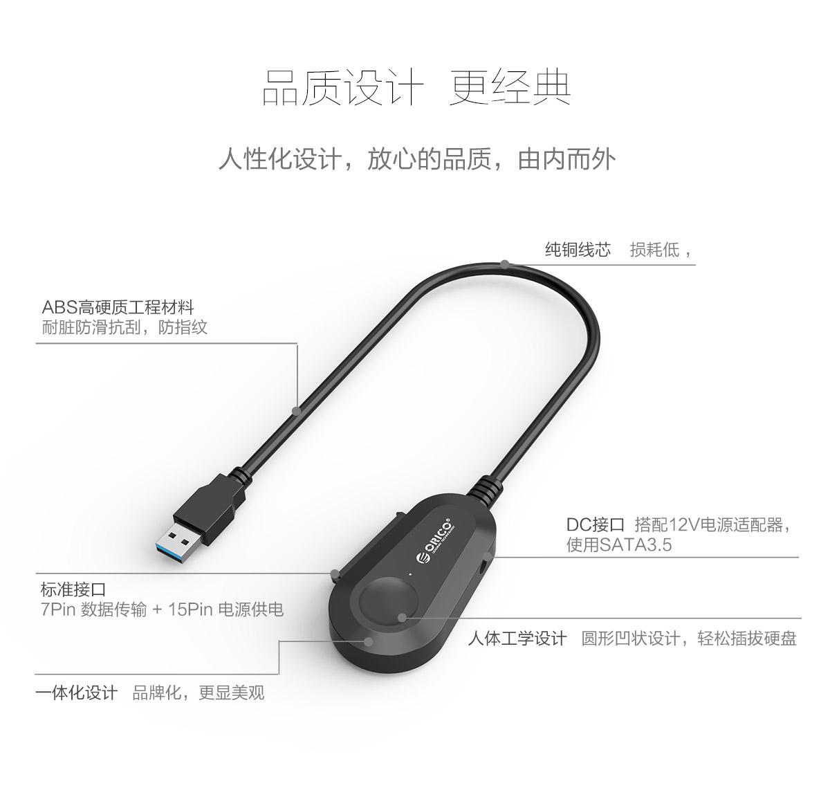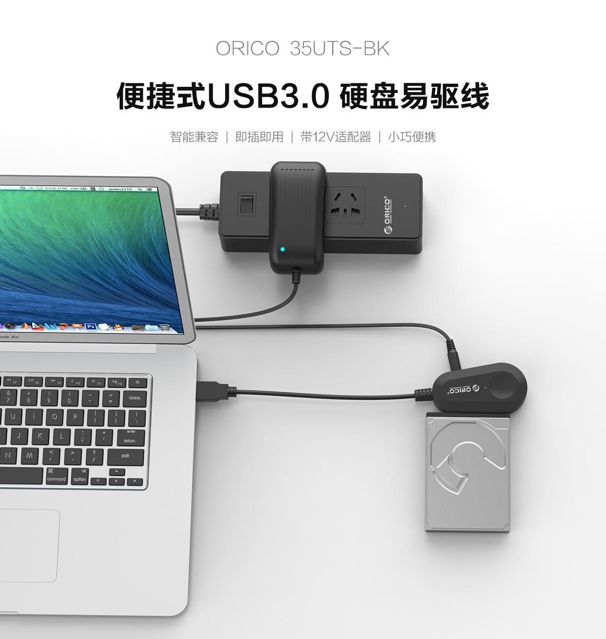 3.5英寸USB3.0便攜式硬盤易驅線,連體數據線