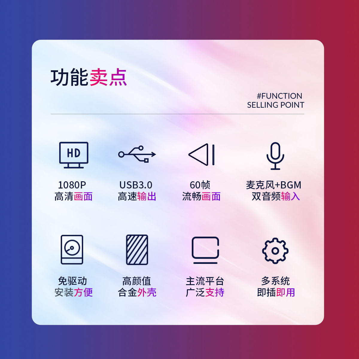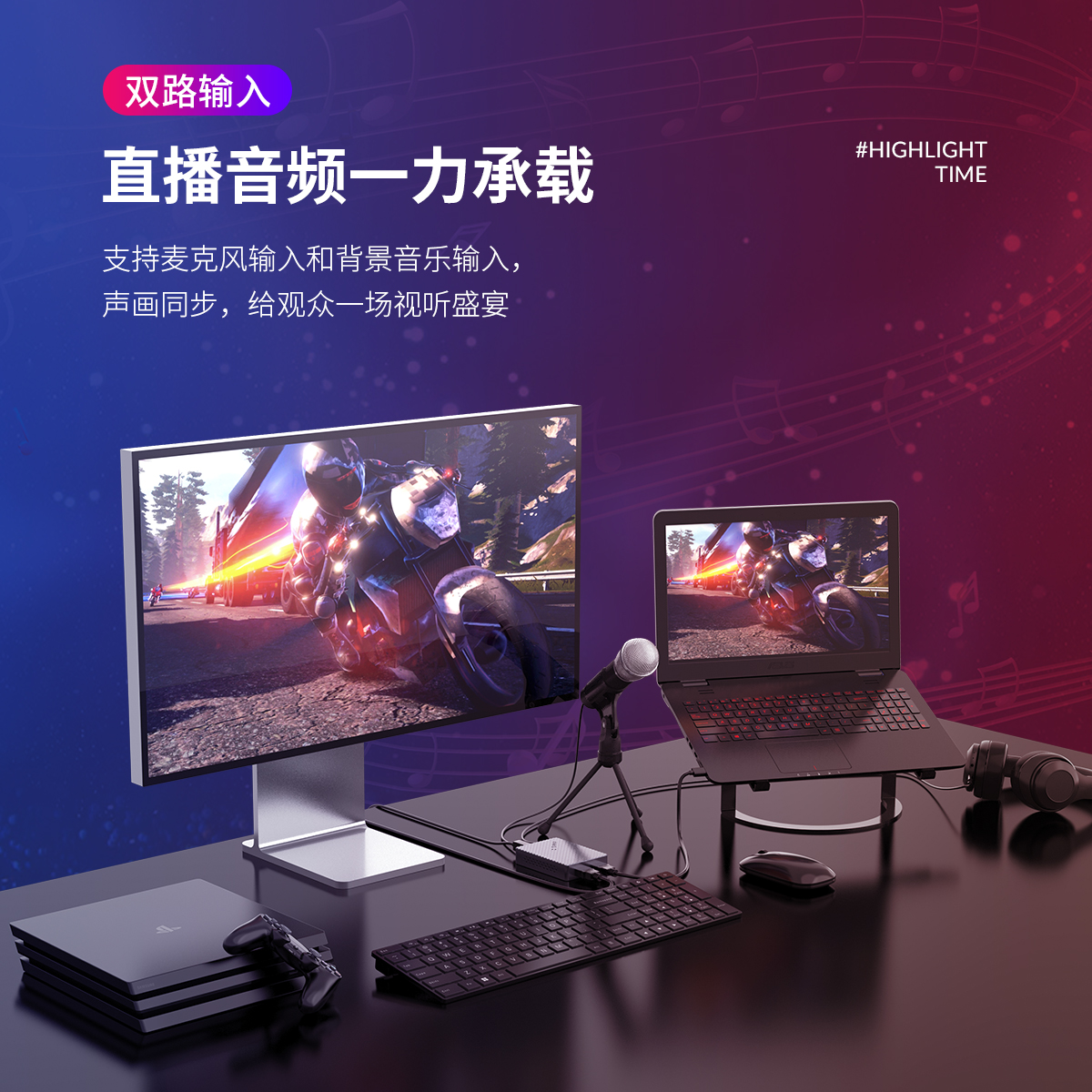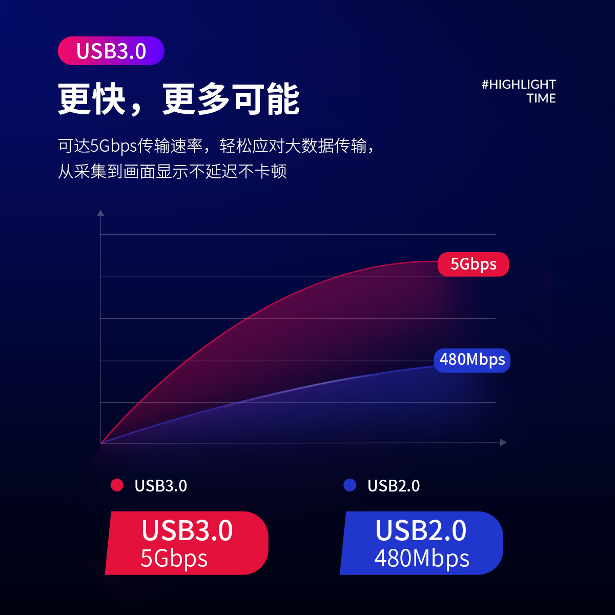 HDMI轉(zhuǎn)USB3.0采集卡,支持1080P@60Hz全高清輸入、環(huán)出、錄制,支持麥克風(fēng)輸入和背景音樂(lè)輸入, 外殼主體由品質(zhì)鋁合金打造,免驅(qū)動(dòng)設(shè)計(jì),兼容多個(gè)設(shè)備、多種系統(tǒng),