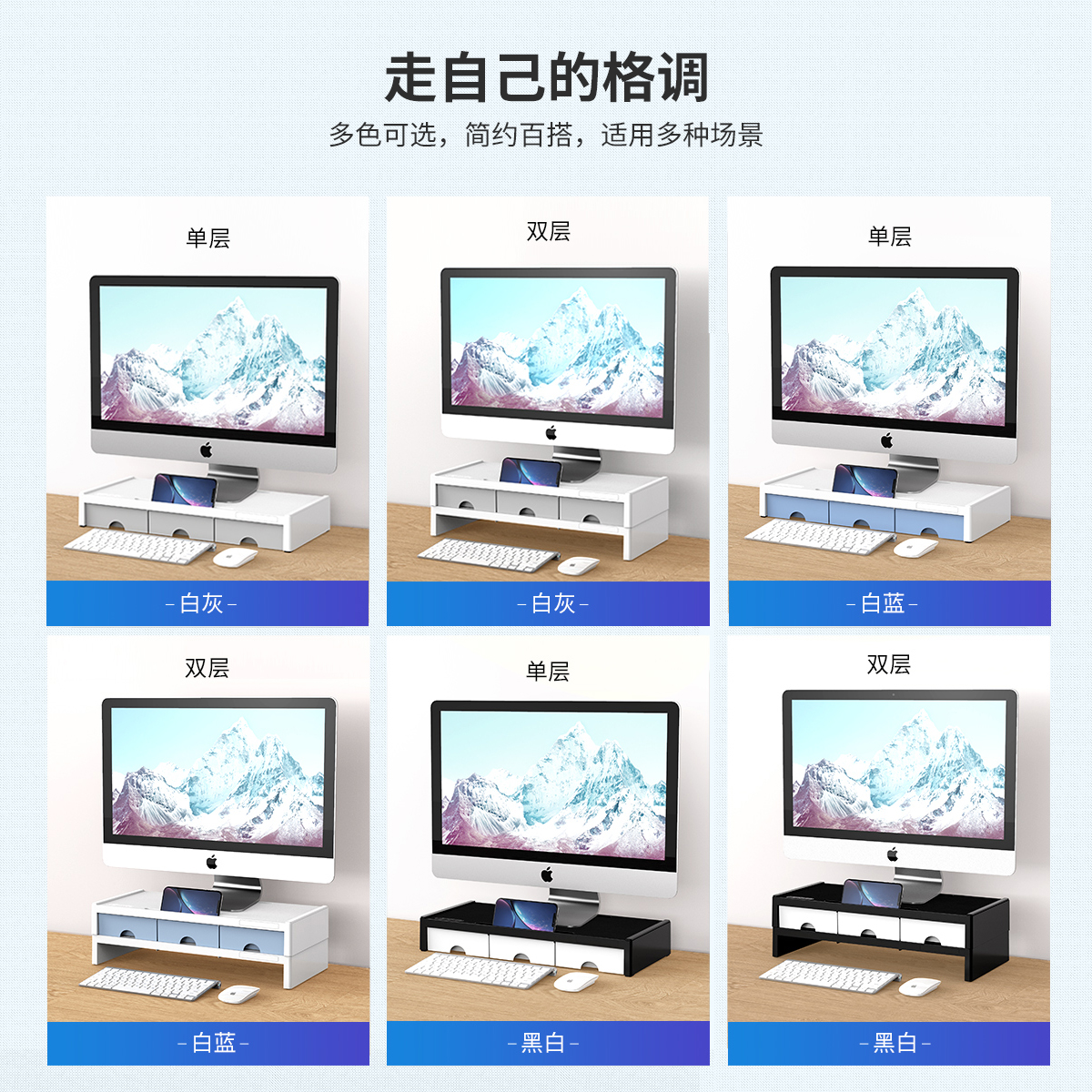 多功能顯示器增高架,配備3個大容量收納盒,日常物品可分類收納,采用厚實ABS材質打造