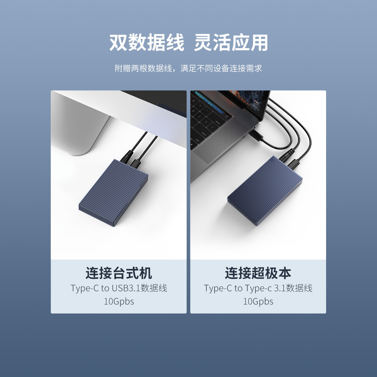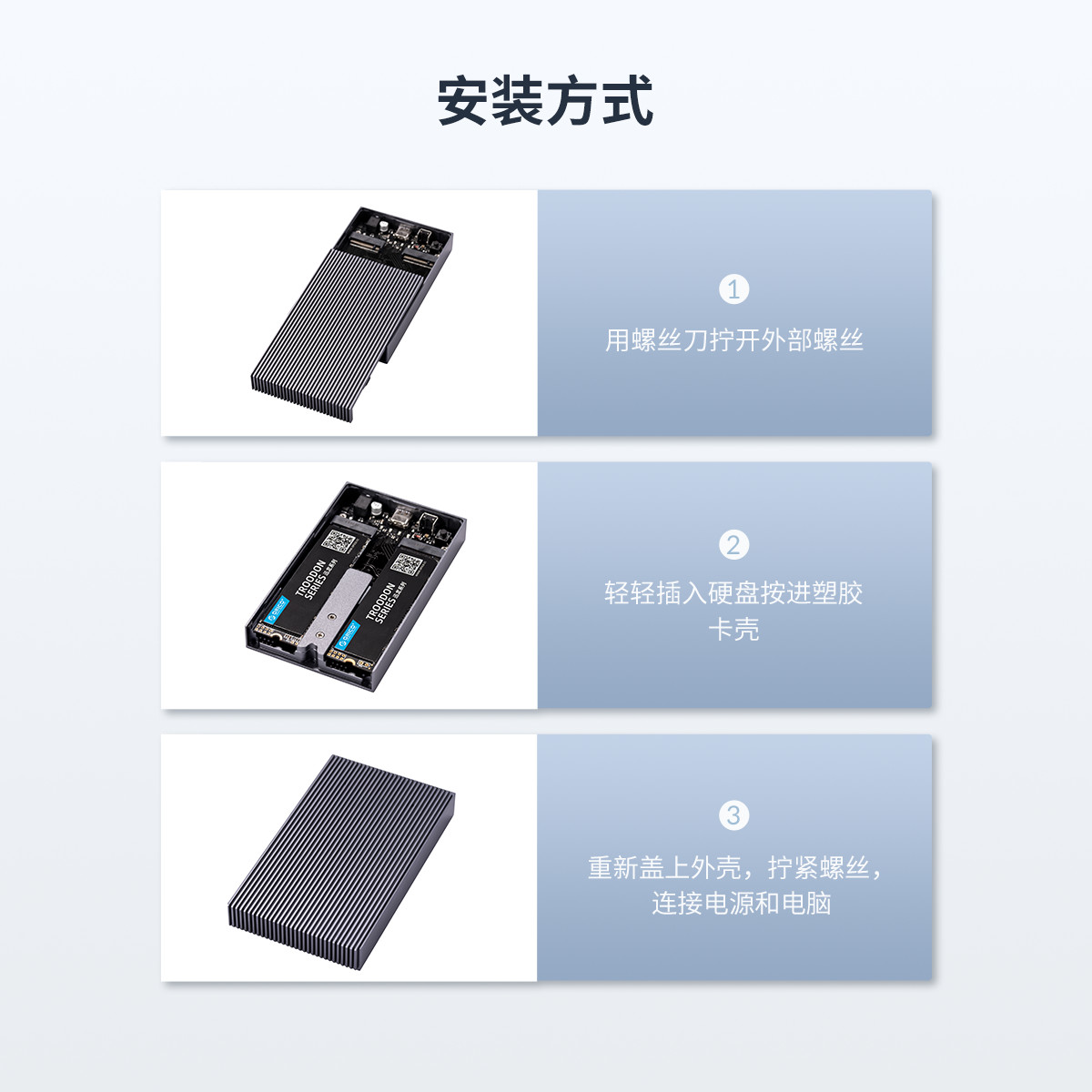 Type-c雙盤位M.2 NVMe硬盤盒,利用條紋散熱棱擴大散熱面積,雙盤位4TB