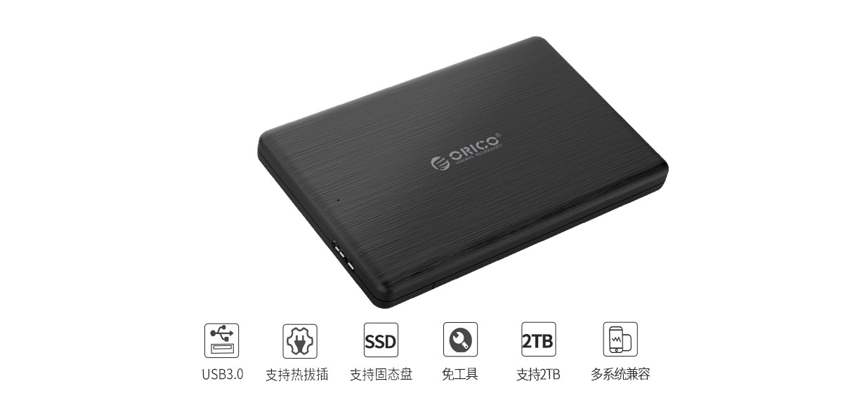 支持2.5英寸7mm厚SATA串口機械硬盤/SSD,兼容Windows/Mac/Linux等市面上主流操作系統。