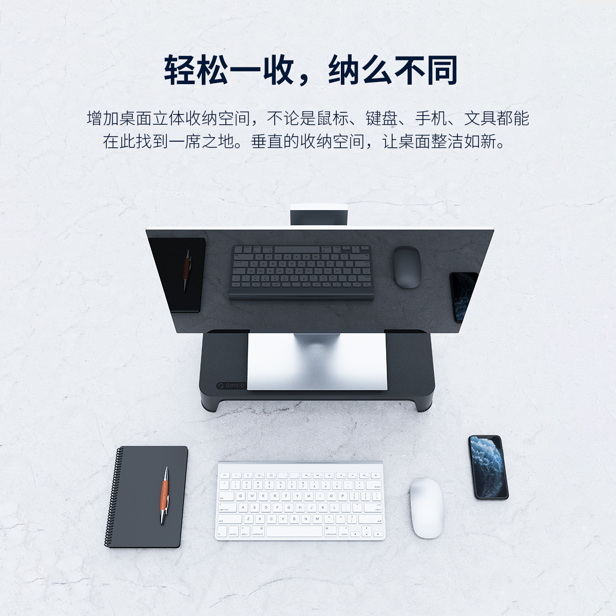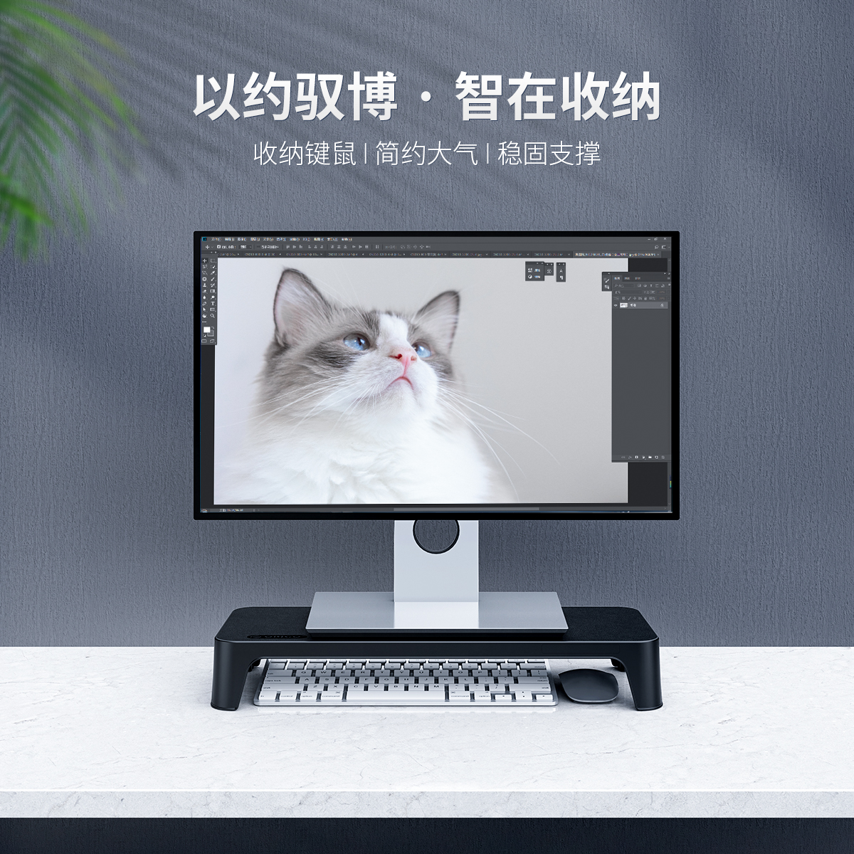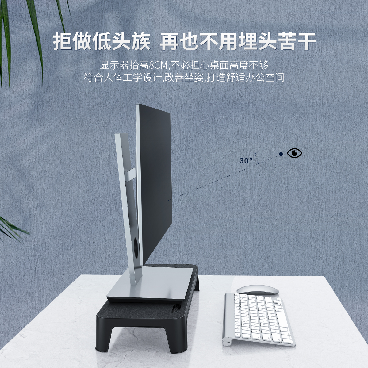 收納鍵鼠|簡約大氣|穩固支撐 顯示器抬高8CM 厚實的ABS材質打造