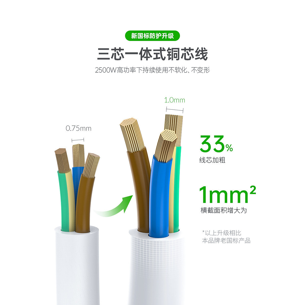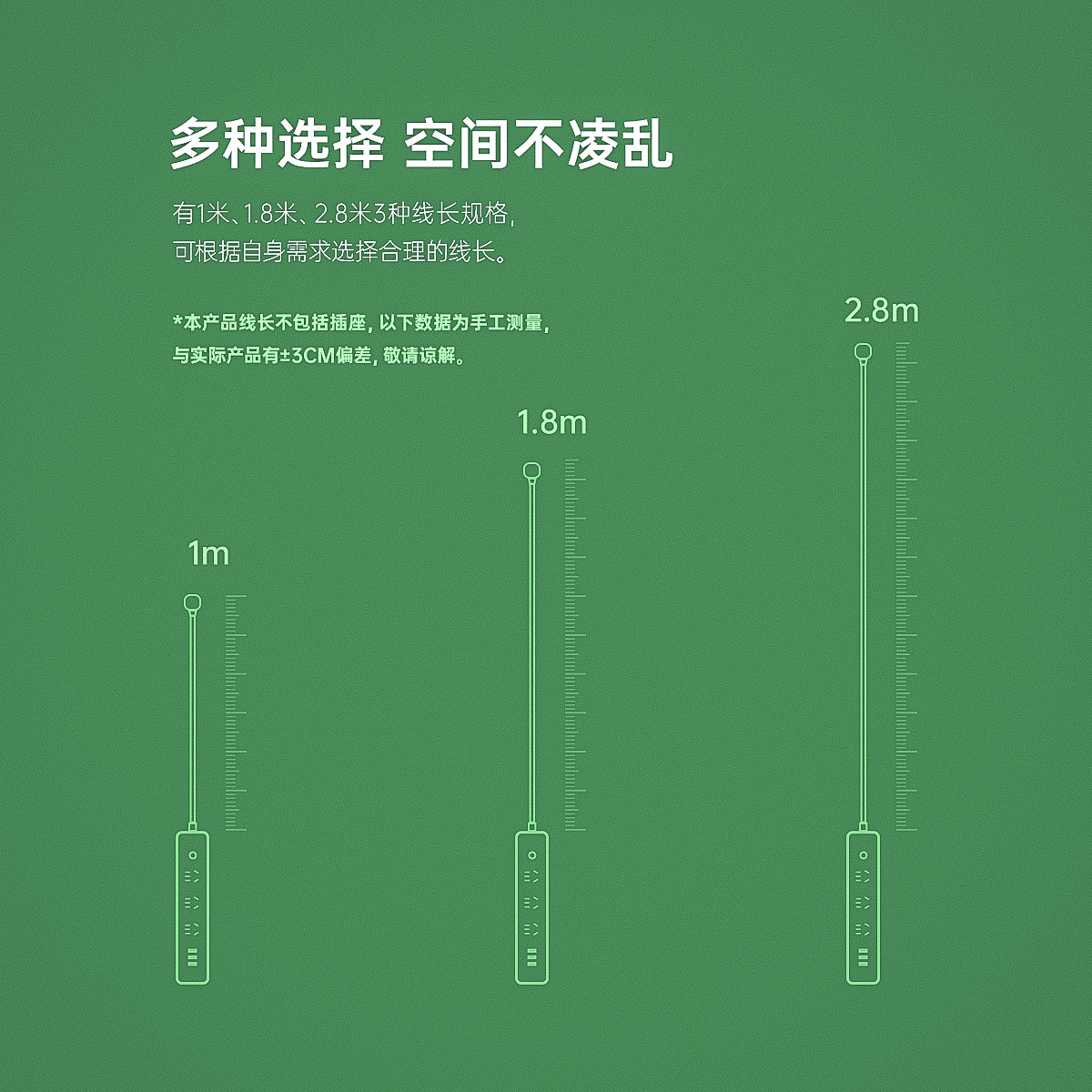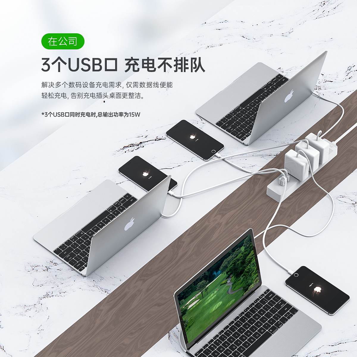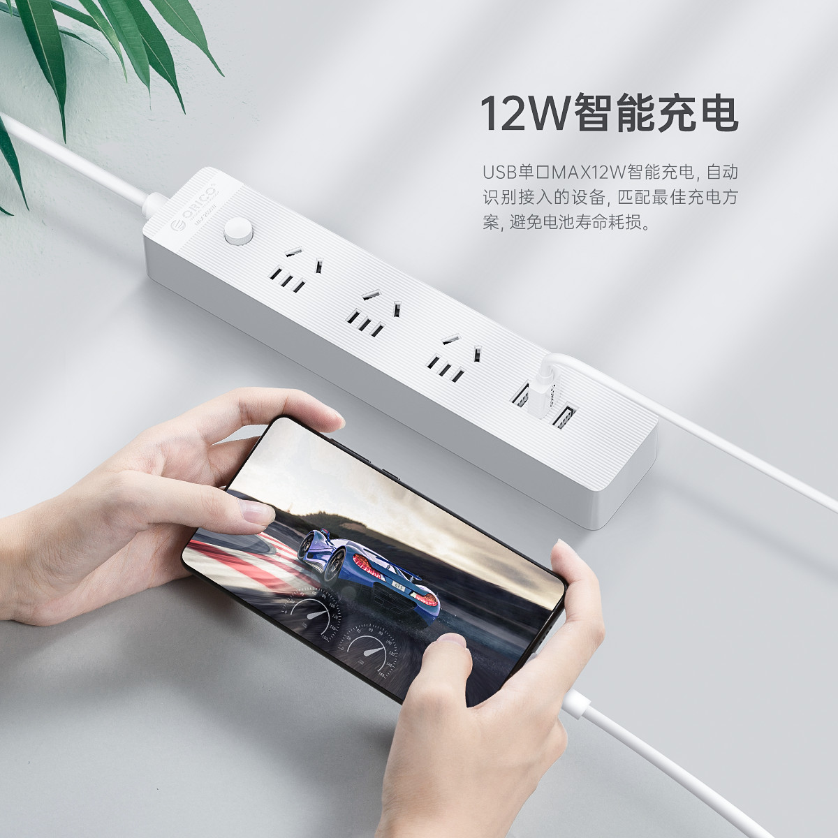 智能USB排插,USB單口MAX12W智能充電,750°C高溫阻燃,三芯一體式銅芯線,有1米、1.8米、2.8米3種線長規(guī)格,