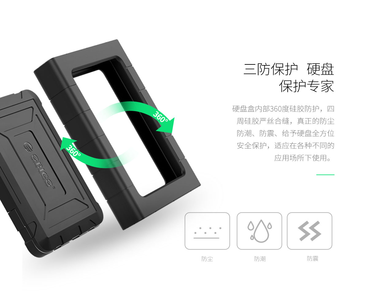 2.5英寸USB3.1 Type-C移動硬盤盒,360度硅膠防護(hù)
