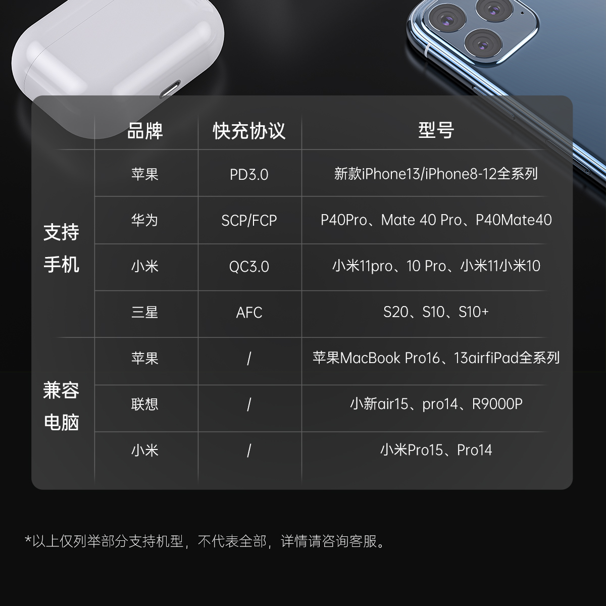 C3 30W PD(5V/3A, 9V/3A, 12V/2.5A, 15V/2A, 20V/1.5A,);