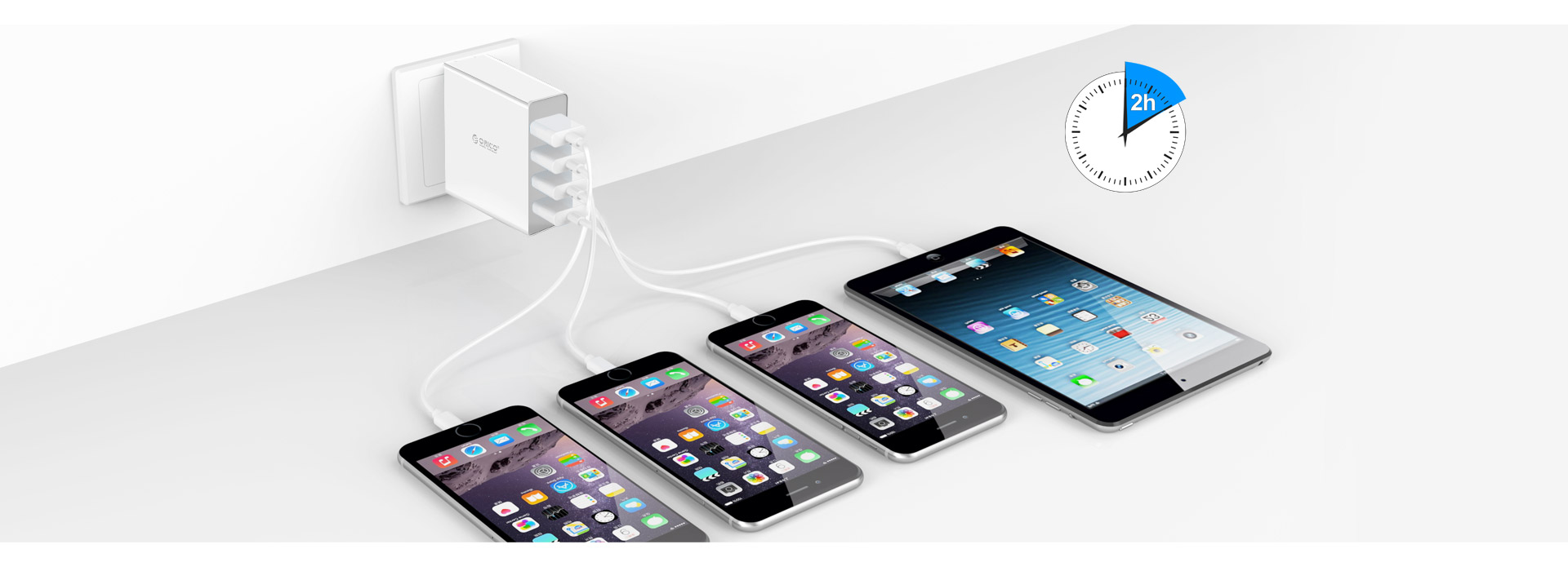 為了實現更智能的充電操作,ORICO DCW-4U采用電流控制和管理模式,配備USB智能充電芯片,可自動識別充電設備,智能匹配快充方案。無論您是三星TAB、Ipad平板還是三星GALAXY手機、HTC、小米、華為等各品牌手機還是移動電源、Ipod、MP4等各種5V設備,Supercharge口都可以自動偵測,給予設備更快的充電電流。