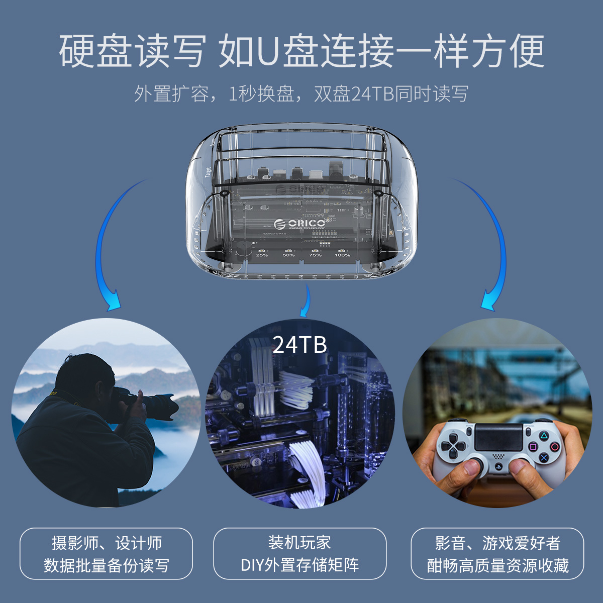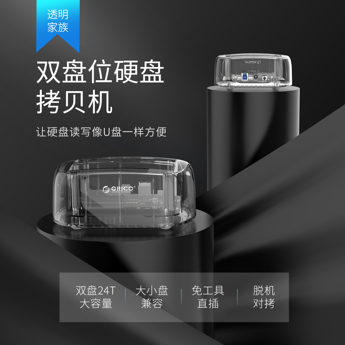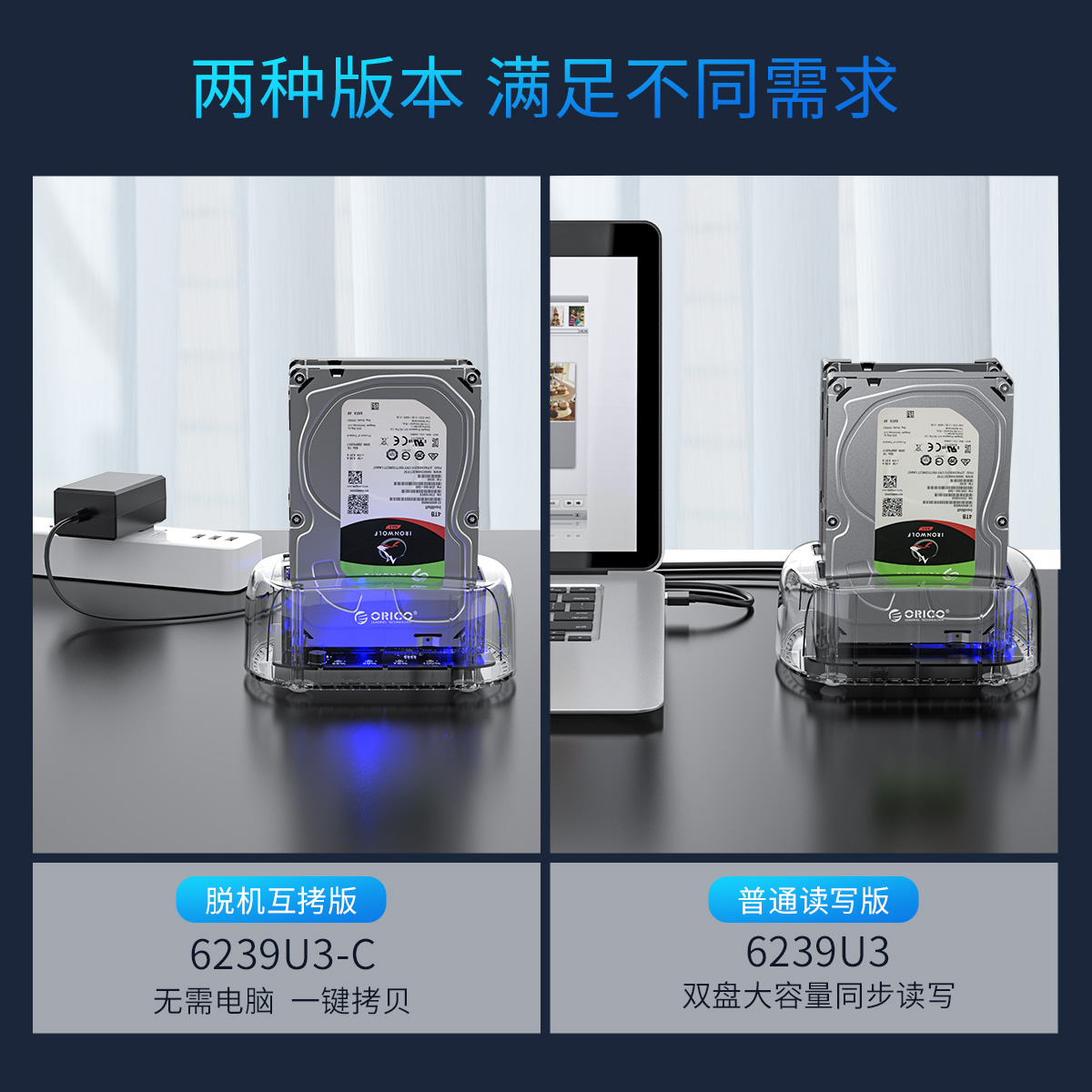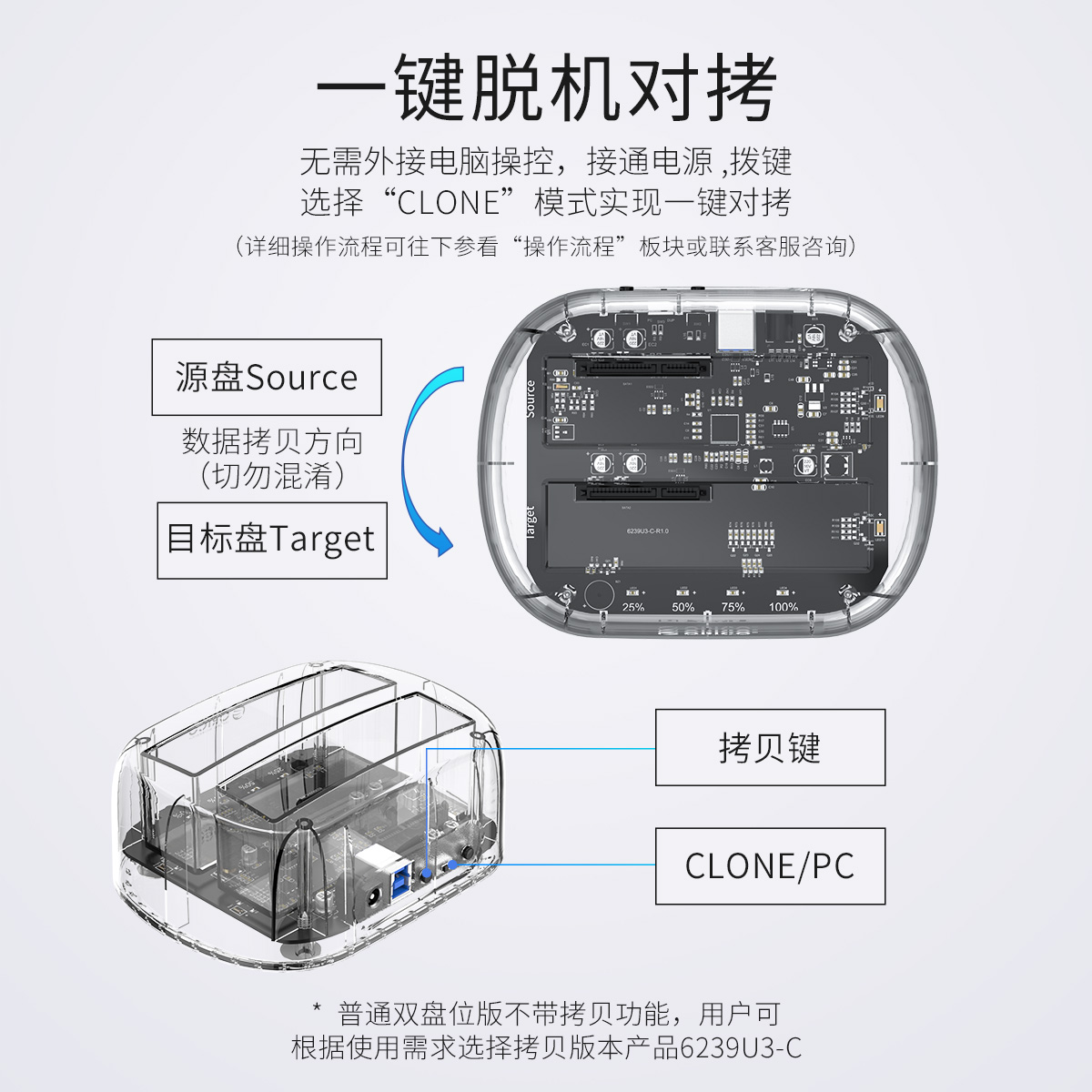 透明系列3.5英寸雙盤位USB3.0脫機(jī)拷貝硬盤底座