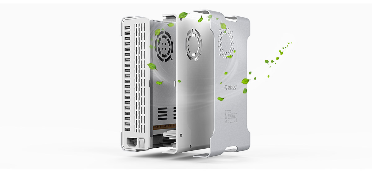 內置主動式散熱風扇,散熱穩定噪音低,持續不斷的運行,內部風道設計,側面帶有散熱孔,加強散熱效果,保證充電的穩定與安全性。