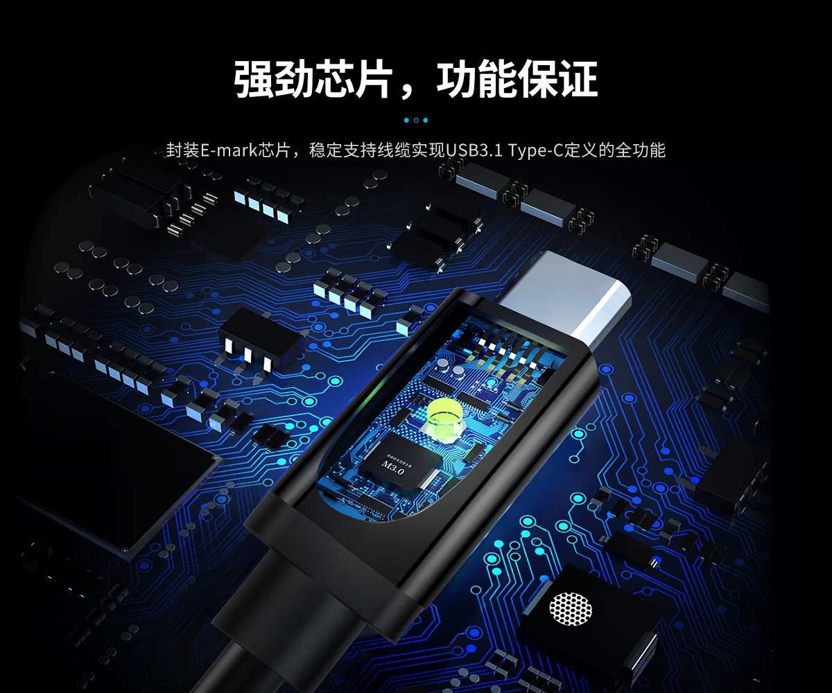封閉E-mark芯片,穩(wěn)定支持線纜實(shí)現(xiàn)USB3.1 Type-C定義的全功能