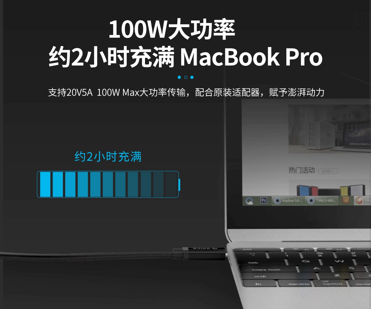 支持20V5A 100W Max大功率傳輸,配合原裝適配器