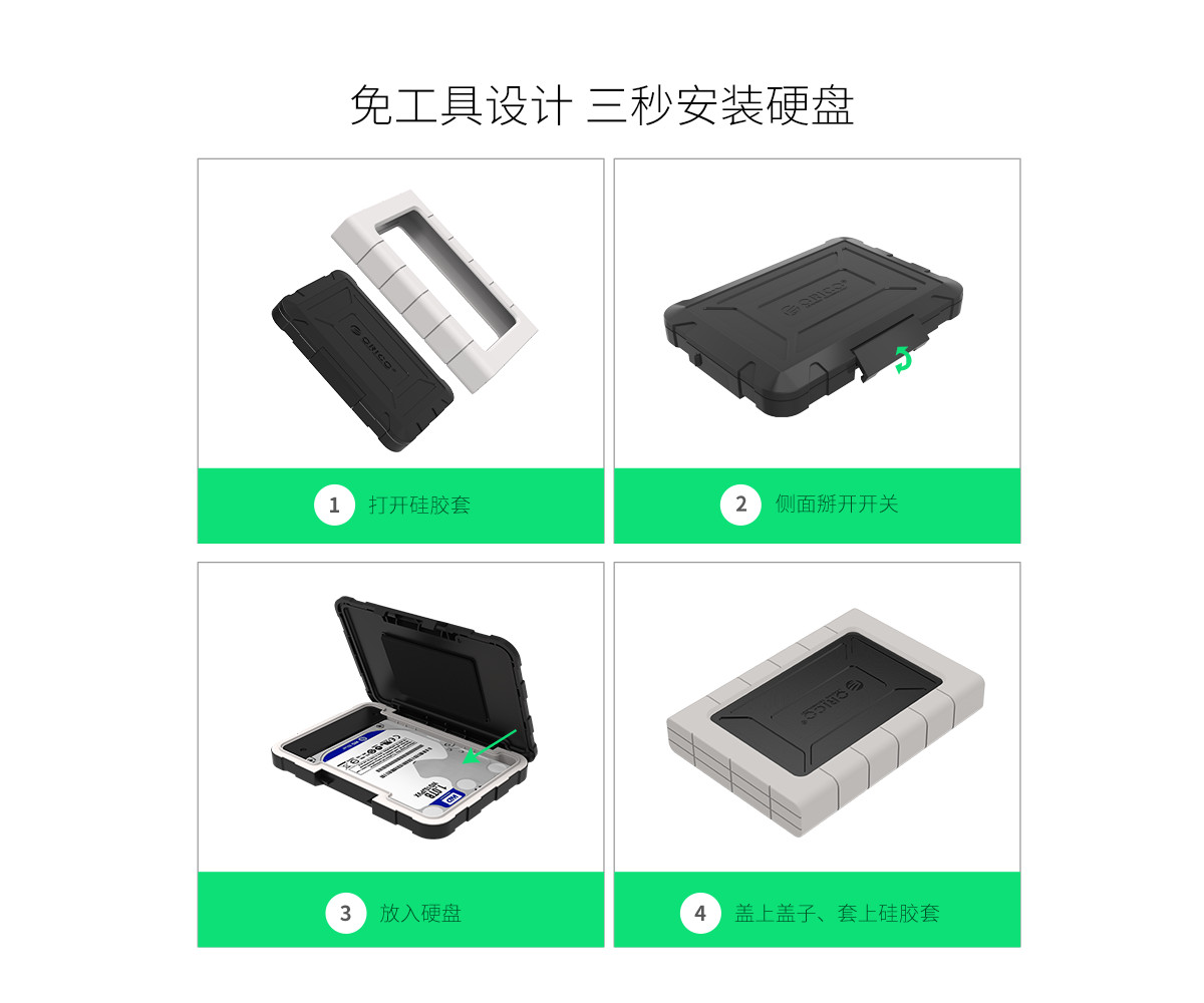 Type-C硬盤盒,三防,高速穩定,2TB擴容