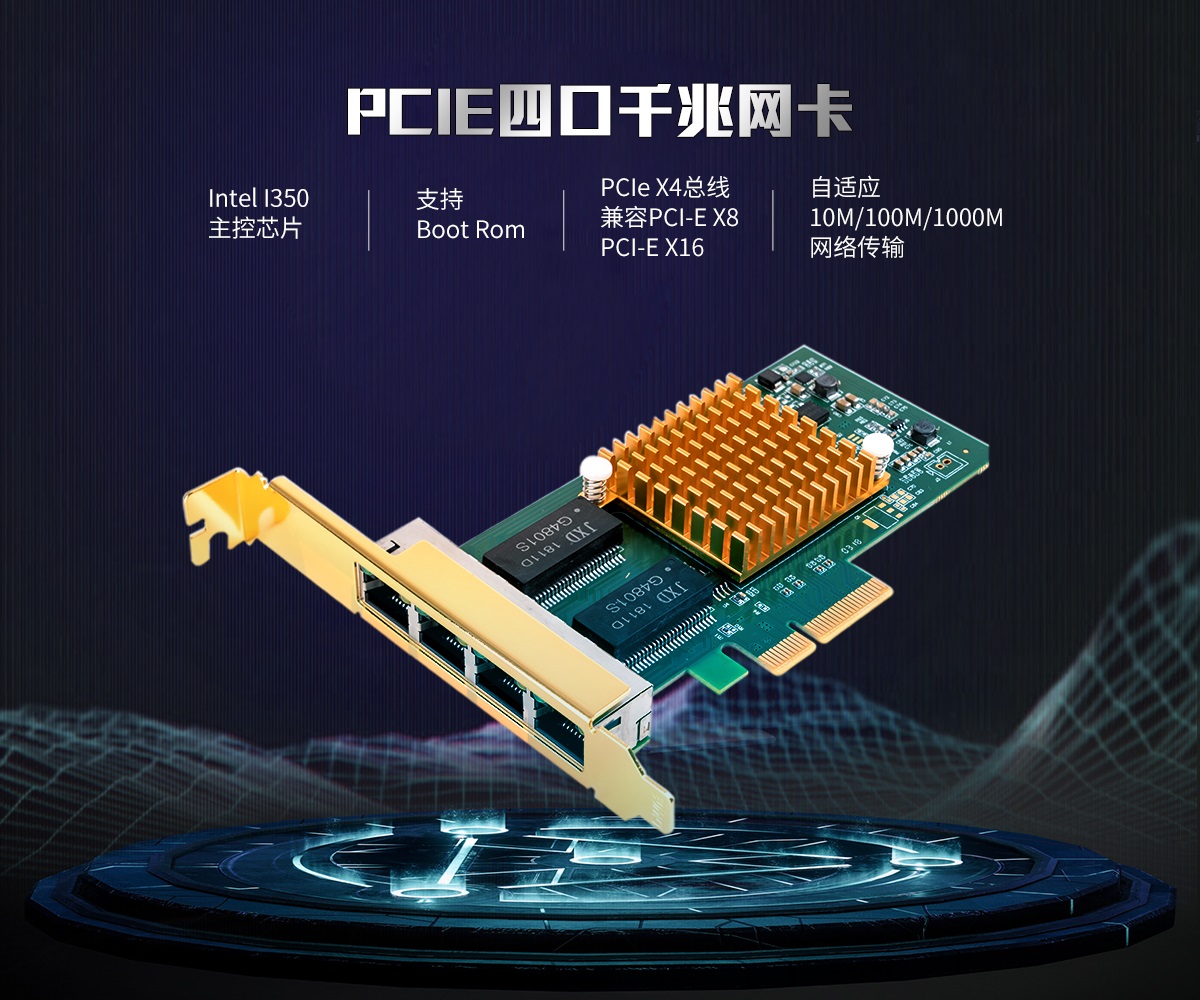 4口千兆網卡PCI-E擴展卡,PCI-E X4總線