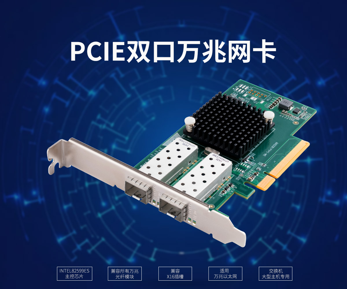 2口萬(wàn)兆網(wǎng)卡PCI-E擴(kuò)展卡,PCIEX8接口兼容X16插槽