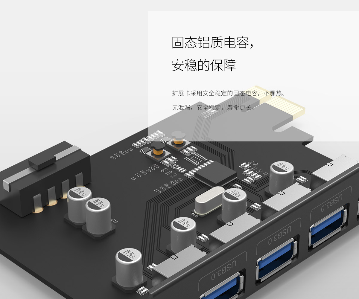 4口USB3.0 PCI-E擴展卡,帶4PIN供電口
