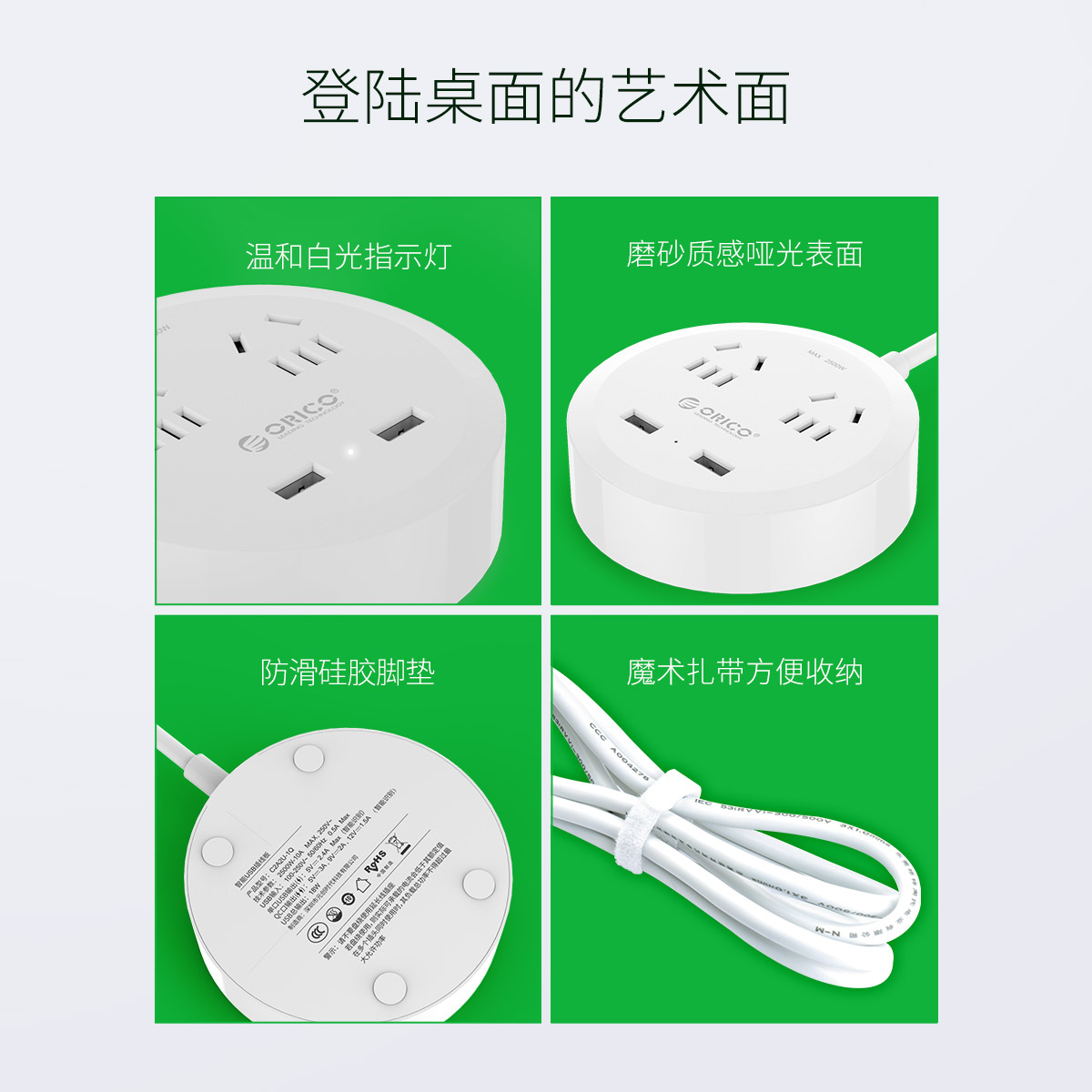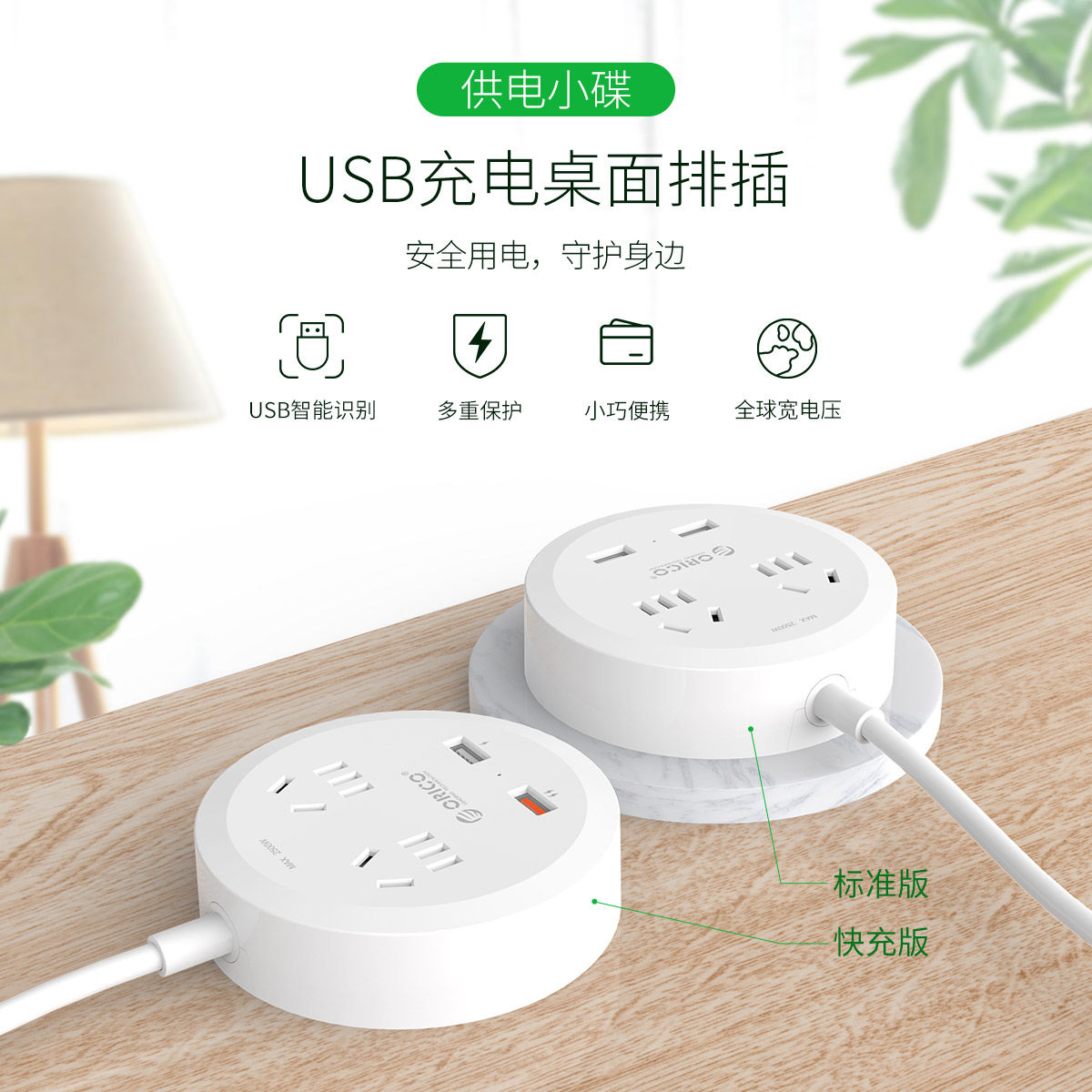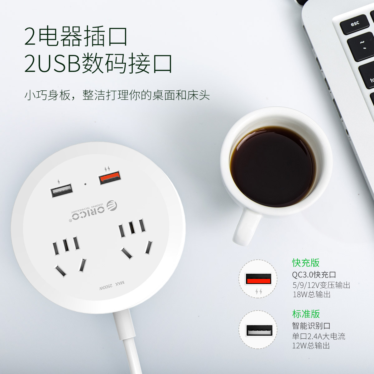 圓形款新國標2AC口2usb口充電桌面排插