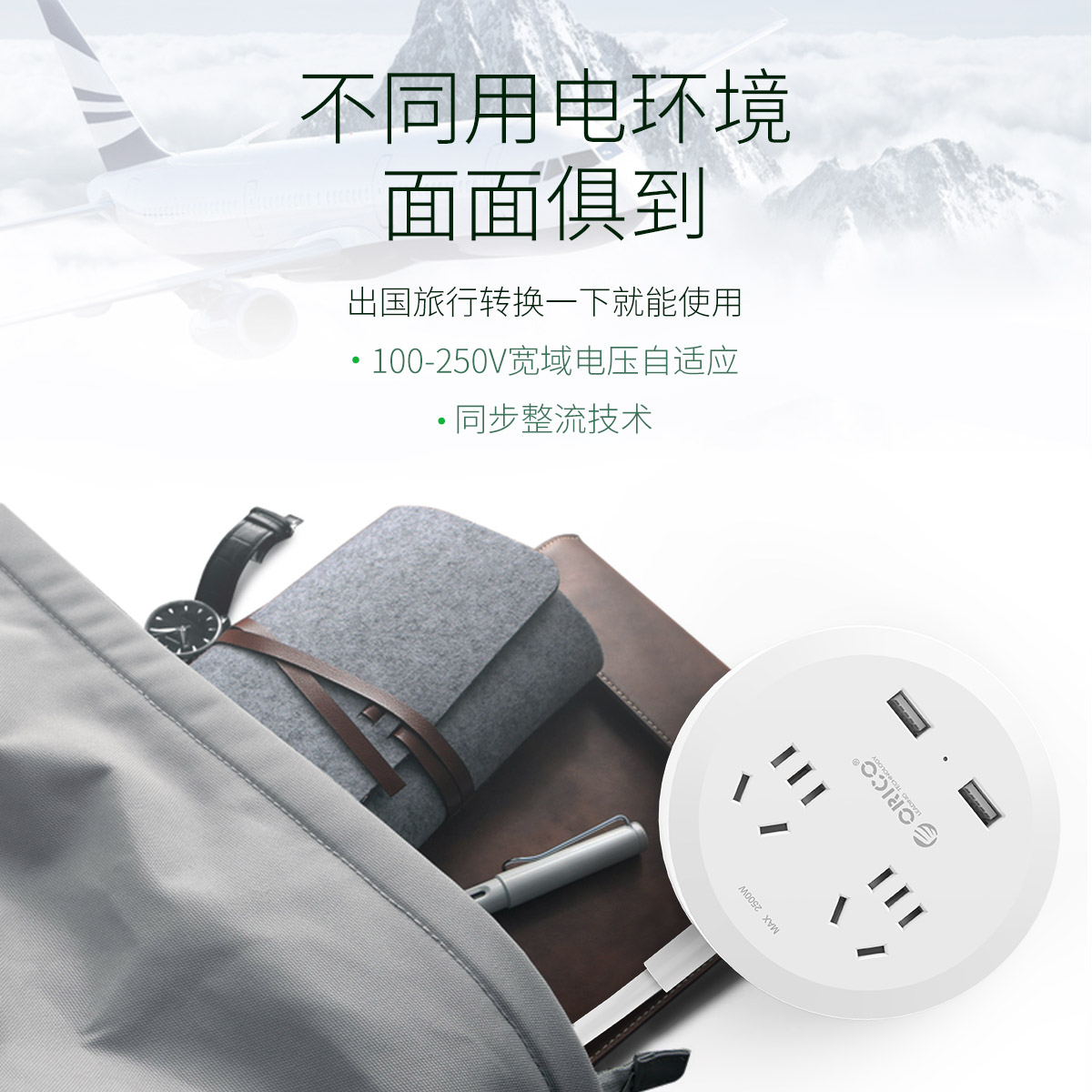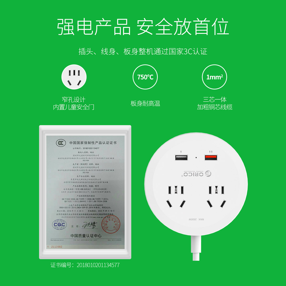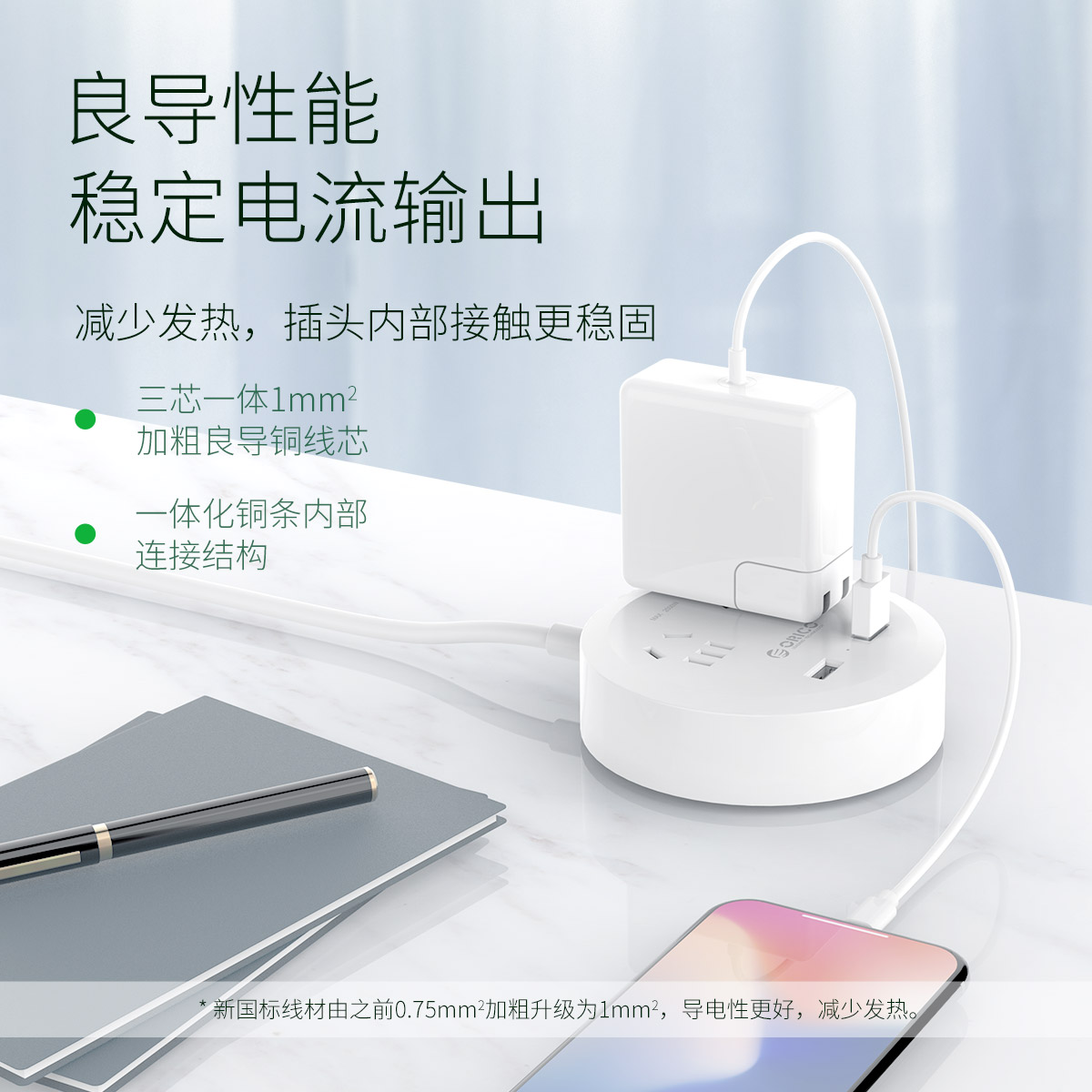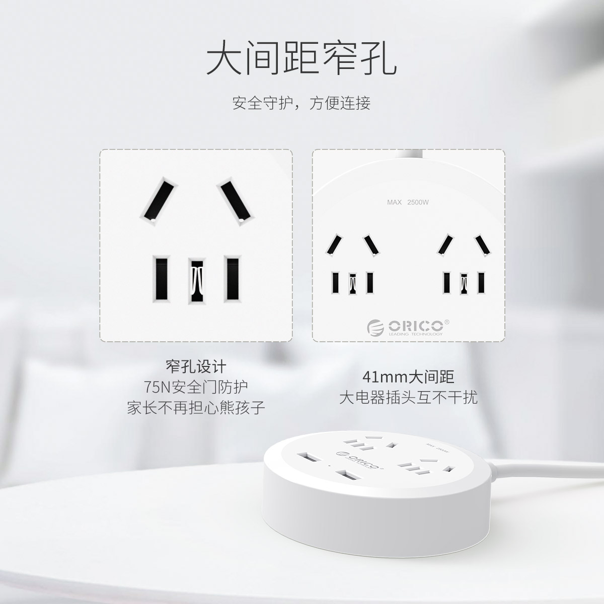 圓形款新國標2AC口2usb口充電桌面排插