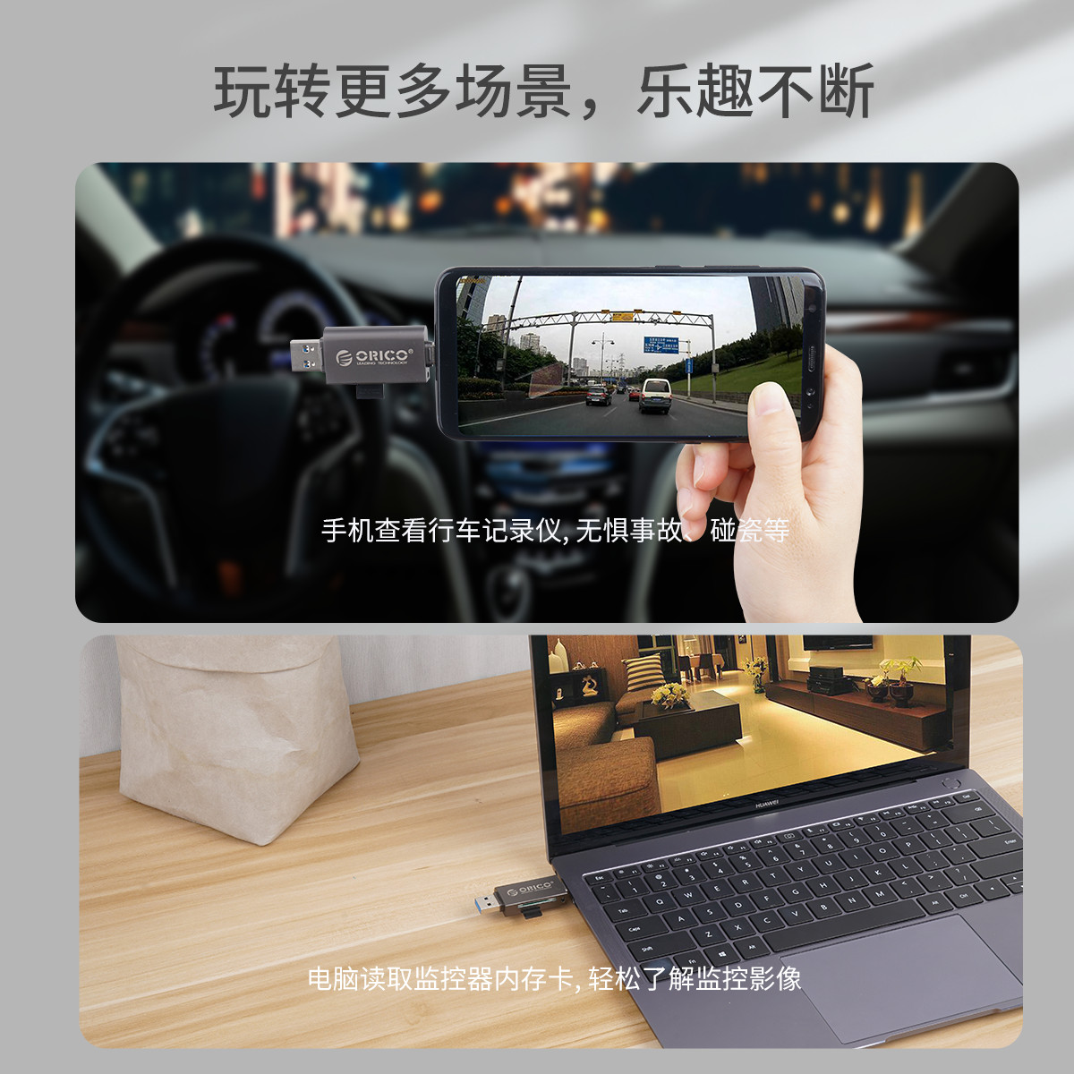 SD/TF雙卡槽,USB3.0告訴讀取,支持OTG,手機/電腦通用,多系統免驅,鋅合金+ABS外殼,輕盈小巧。