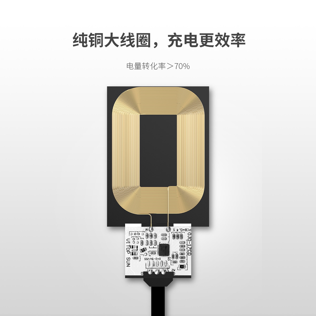 即放即充,輕薄貼合機身,采用純銅大線圈,充電更有效率,6mm感應距離,電子產品都可開啟無線充