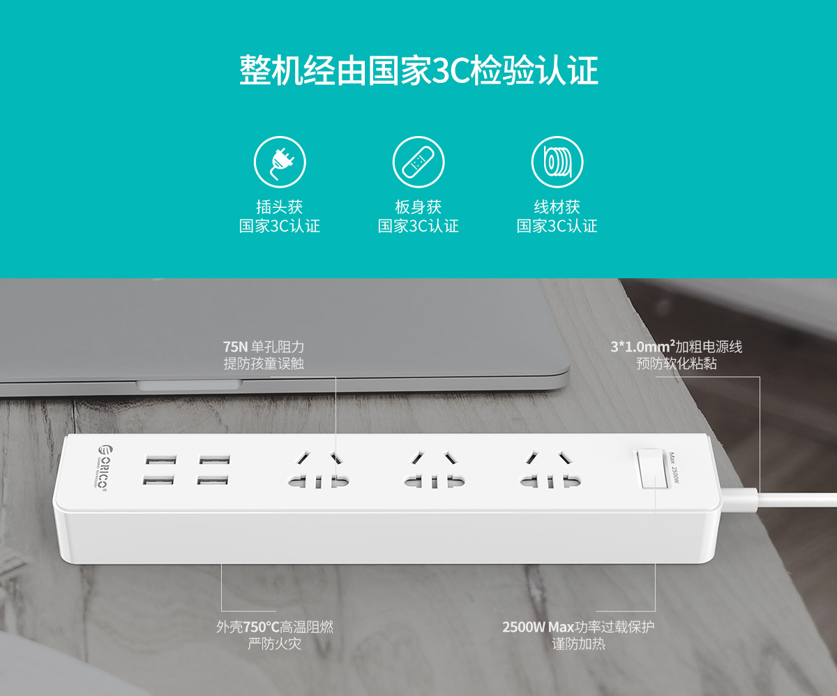 新國標(biāo)便攜桌面式排插,辦公智能排插,高溫環(huán)保材料,底座硅膠防滑